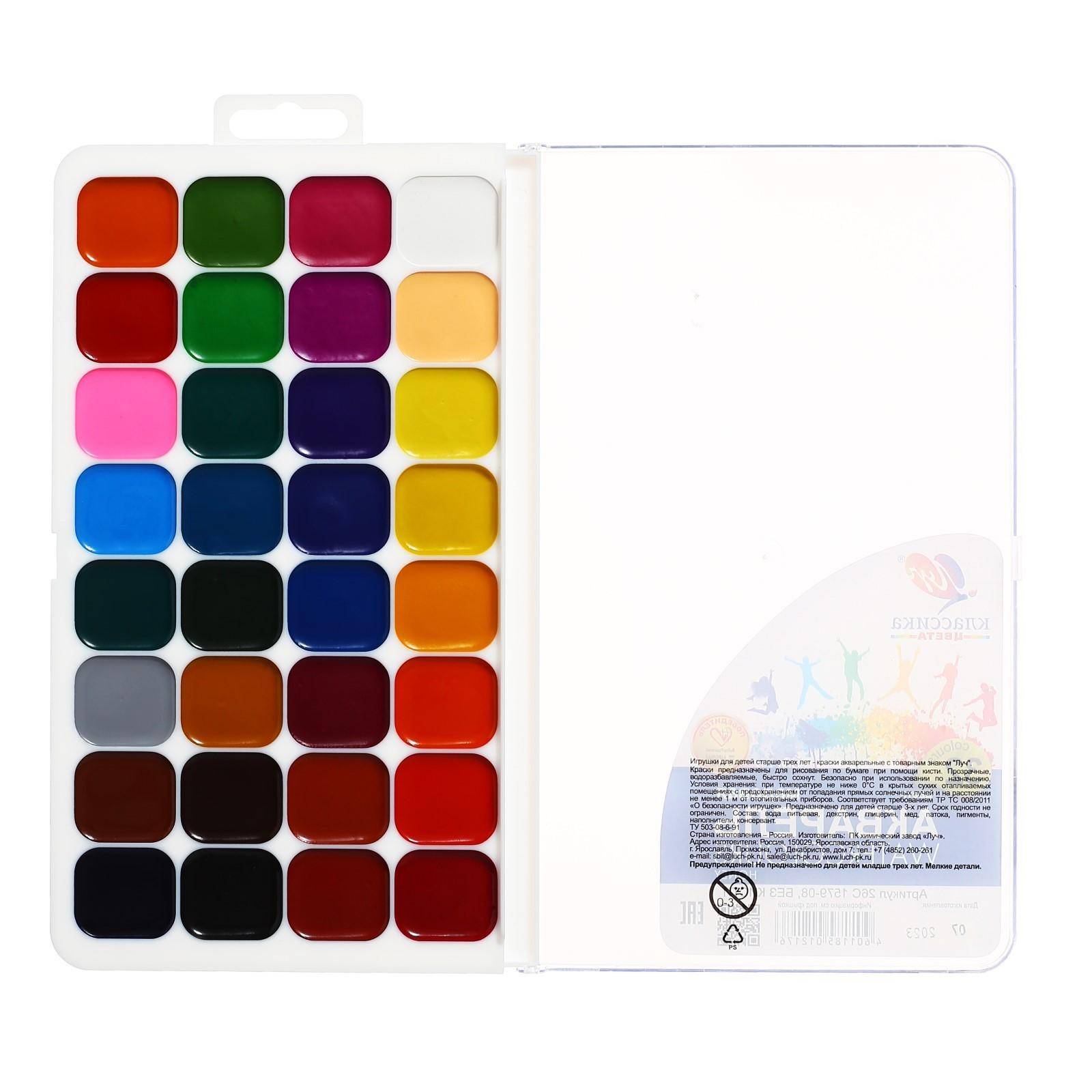 Acuarela pe baza de miere, in ambalaj de plastic cu capac transparent, cuve patrate, fara pensula. Acuarela LUCI, in set de 32 culori pentru creativitatea copiilor cu culori luminoase si pure, realizata dupa reteta clasica folosind miere. Se spala perfect si se intinde pe suprafata hartiei. Vopselele se amesteca intre ele, mentinand saturatia culorii. Setul contine 32 culori: alb, bej, lamaie, galben, galben inchis, portocaliu, rosu, rubin deschis, roz, liliac, violet, albastru, albastru deschis, visiniu, ocru rosu, oxid de fier rosu, verde original, verde deschis, verde smarald, turcoaz, verde, ocru, maro, negru, galben-portocaliu, carmin, roz aprins, albastru azuriu, albastru-verde, gri, oxid de fier cafeniu, ultramarin.