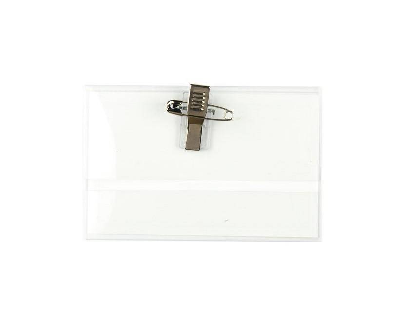 Ecuson destinat pentru carti de vizita, abonamente, carti personale. Boldul va permite sa atasati ecusonul de imbracaminte. Dimensiune 57x90mm. Orientare orizontala. Culoarea este transparenta.