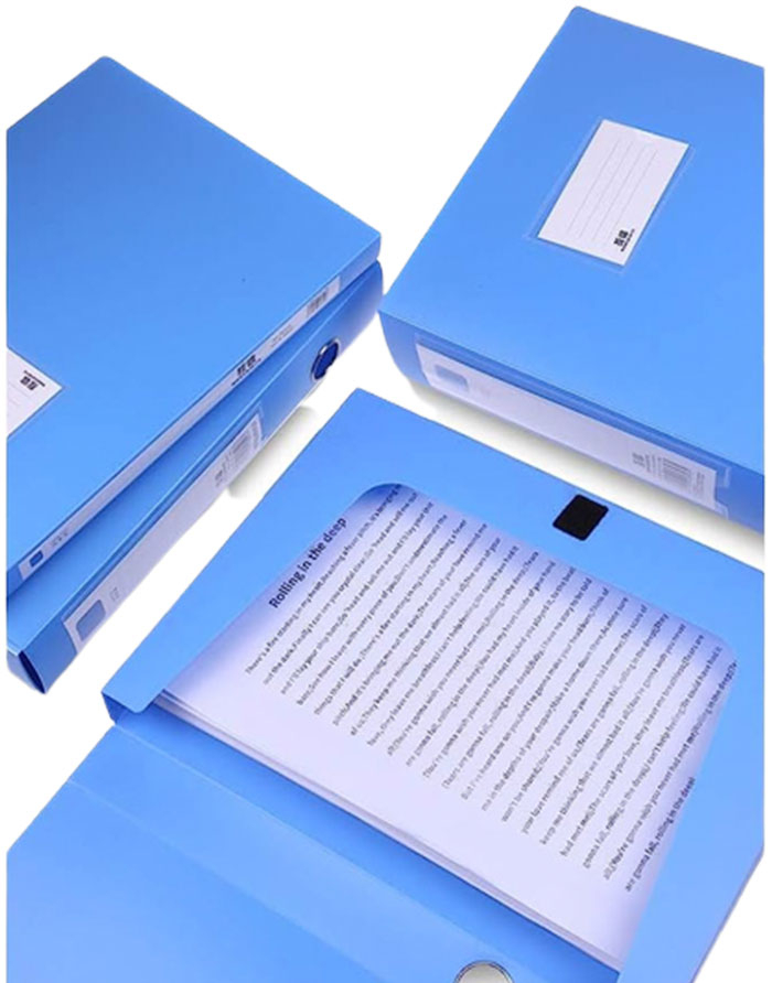 Boxa pentru arhivare va permite sa stocati documentele pe orizontala si verticala, exista o gaura ergonomica pentru degete pe cotorul boxei. Latimea cotorului 75 mm. Confectionat din plastic opac cu 3 straturi. Dispune de un ecuson pe coperta si arici pentru prinderea boxei. Culoare boxa albastru.