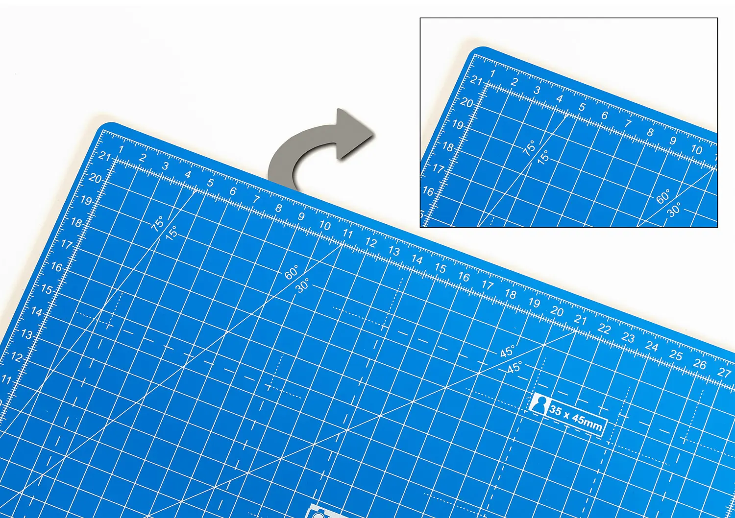 Covoras pentru taiere cu o constructie durabila, cu un miez rezistent la taiere si o suprafata de taiere cu autoregenerare de 5 straturi. Linii de ghidare clar aranjate pentru pozitionarea optima a materialului taiat. Covorasele de taiere DAHLE sunt imprimate pe ambele fete, astfel se pot utiliza ambele fete si se garanteaza o durata lunga de viata.
