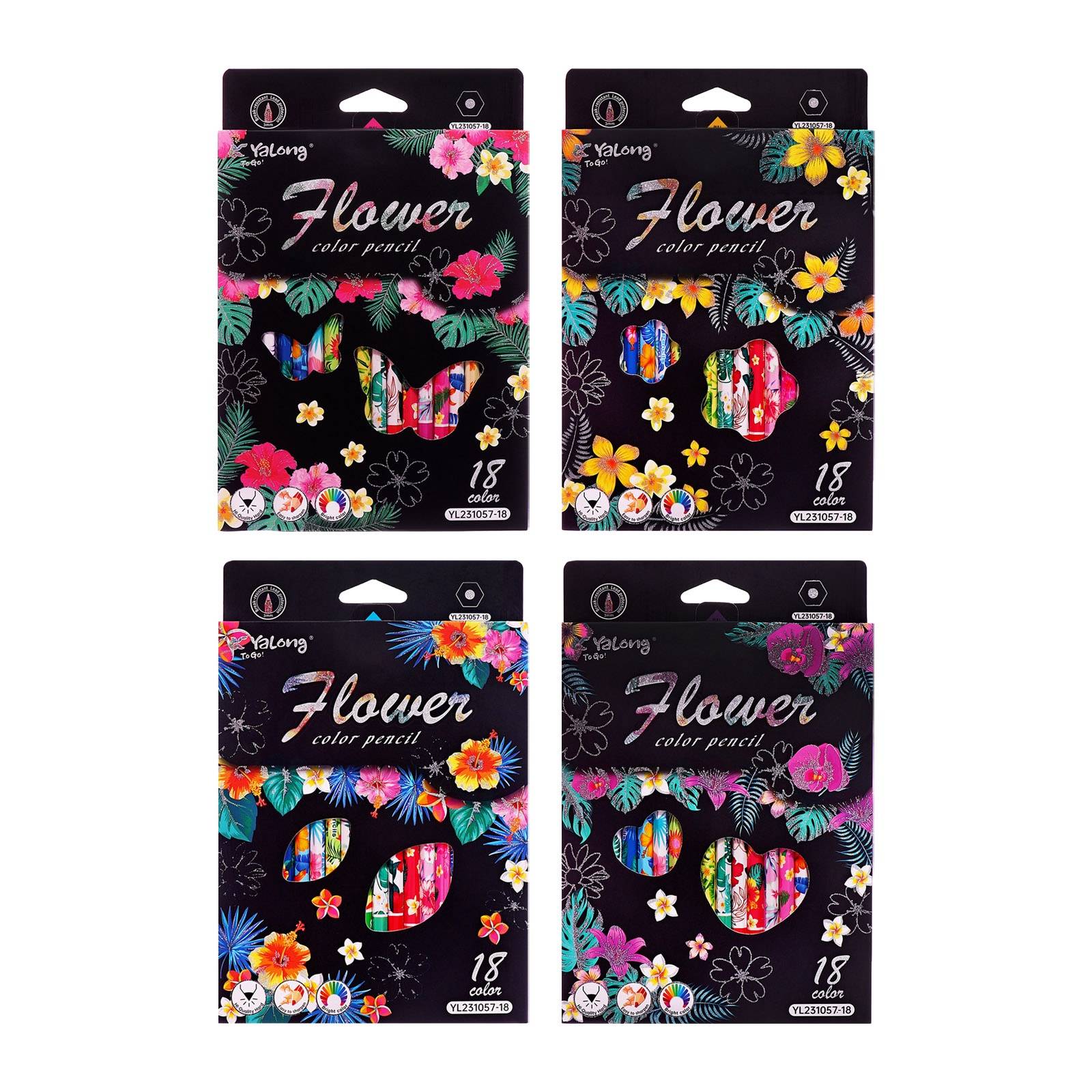 Creioane colorate Yalong 231057-18YL, hexagonale, 18 culori
