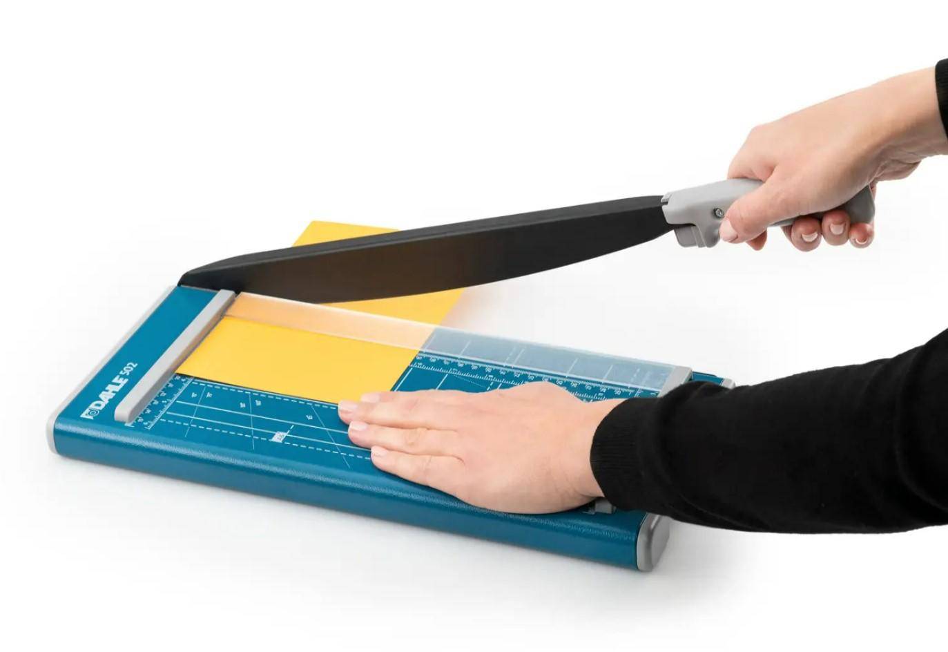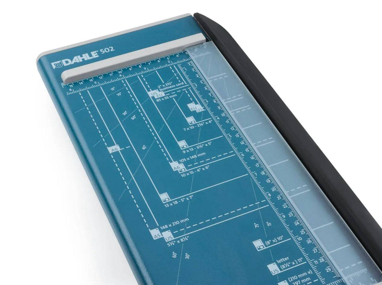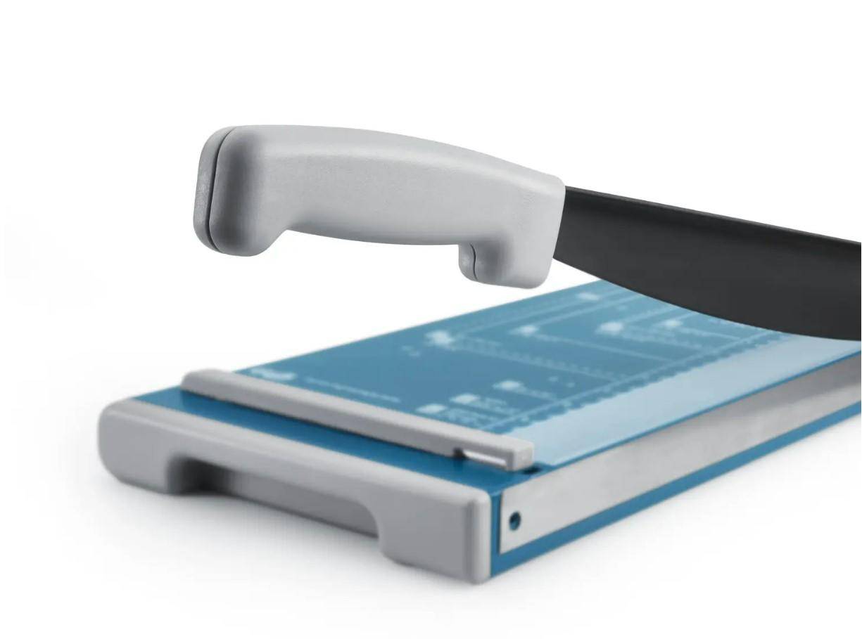 Ghiliotina pentru format A4. Dimensiunea mesei 420 mm x 175 mm. Lungime de taiere pana la 320 mm. Grosimea de taiere 0,8 mm (8 coli, densitate 80 g/cm). Greutatea: 1,5 kg.
