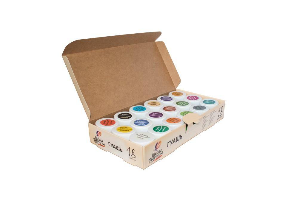 Goasa Luci, Scola tvorcestva, 18 borcane de plastic, cate 20 ml; 18 culori: alb titan, galben deschis, rosu, smarald, albastru deschis, negru, portocaliu, liliac, albastru, galben-verde, rosu-maro, bej, gri, verde deschis, roz, turcoaz, violet, ocru. �onsistenta si uniformitate optima (vopseaua nu este lichida, nu este ingrosata, nu este uscata ). Este foarte convenabil sa pictezi cu ea: se spala usor cu apa si se aplica bine pe hartie, carton, panza, tesatura si placaj. O eticheta stralucitoare pe capac care indica culoarea vopselei este o comoditate pentru utilizator. Ambalajul sigilat previne uscarea vopselei. Vopseaua se caracterizeaza prin culori stralucitoare, frumoase si pure. Se amesteca bine, permitandu-va sa obtineti noi culori si nuante pure. Guasa are o putere excelenta de ascundere. Cand este uscata, vopseaua nu se estompeaza si capata o suprafata catifelata. Nu are un miros neplacut.