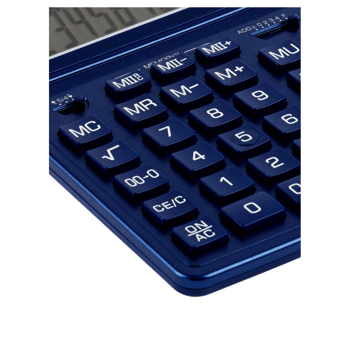 Calculator cu 12 cifre Eleven SDC444XNV este un asistent indispensabil la birou, la scoala si acasa. Un set optim de functii va ajuta la automatizarea calculelor: calcul radacina patrata, corectare a ultimei valori introduse, buton �00� si �000�, memorie dubla, calcul de adaos. Alimentare dubla (solar + baterie AG10, LR1130, LR54) si oprirea automata. Dimensiunea calculatorului 204x155x33mm. Culoare albastru.