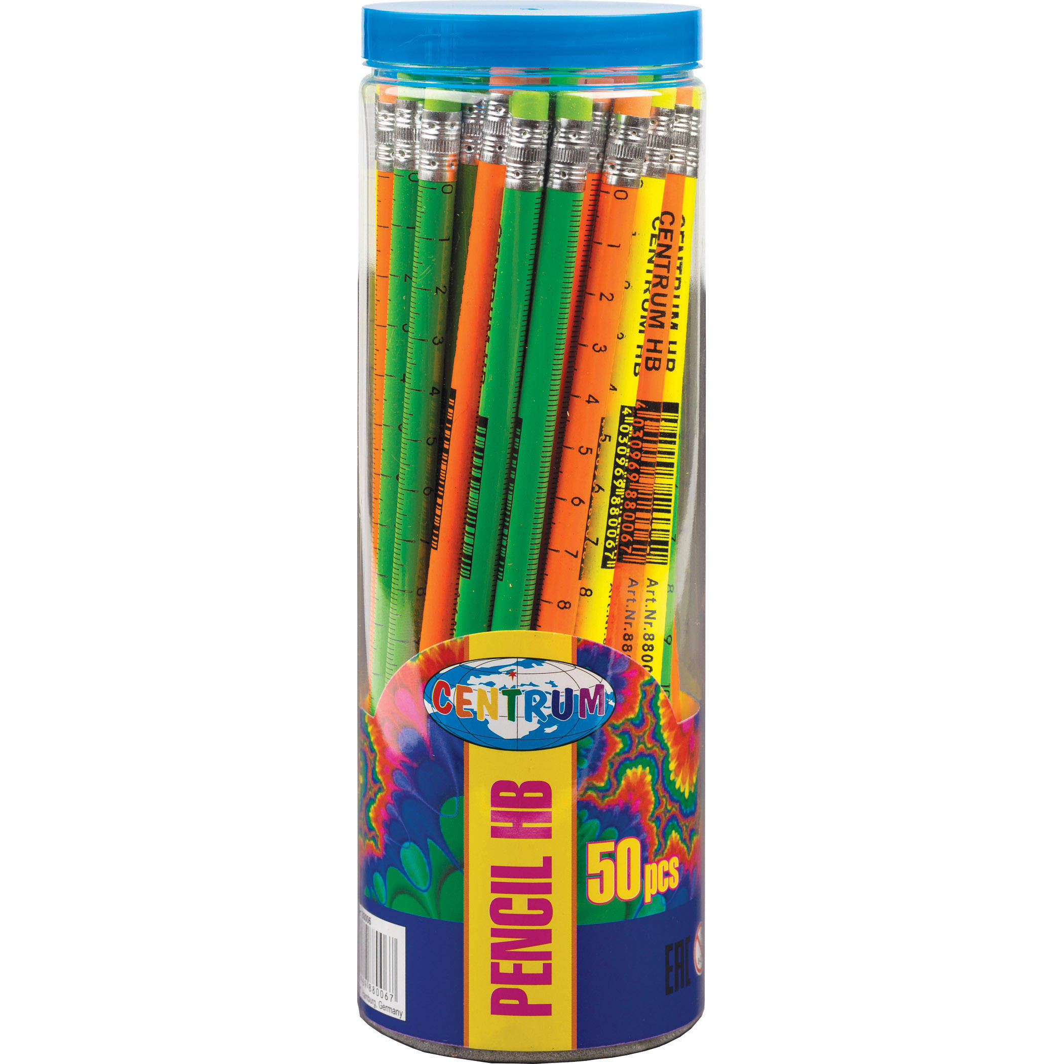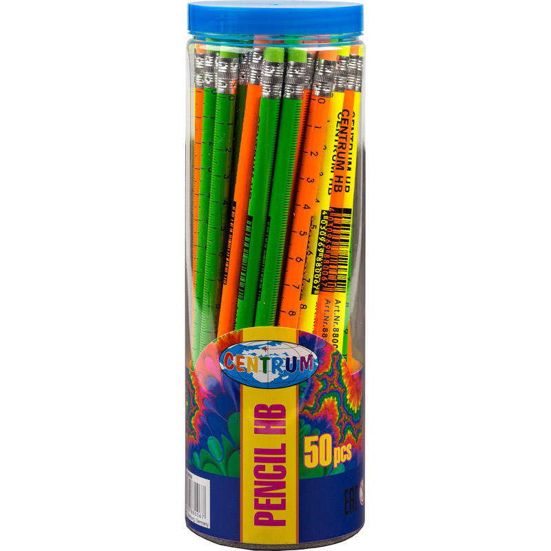 Creion grafit Centrum dispunde de un corp rotund, ascutit cu radiera, material corp: lemn. Duritatea creionului este HB. Culoarea corpului asortat. Ambalare: tubus din plastic a cate 50 bucati.
