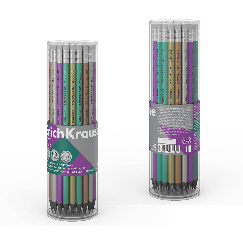 Creion simplu ErichKrause 55274 Metallic HB, rotund, cu radiera