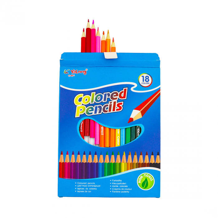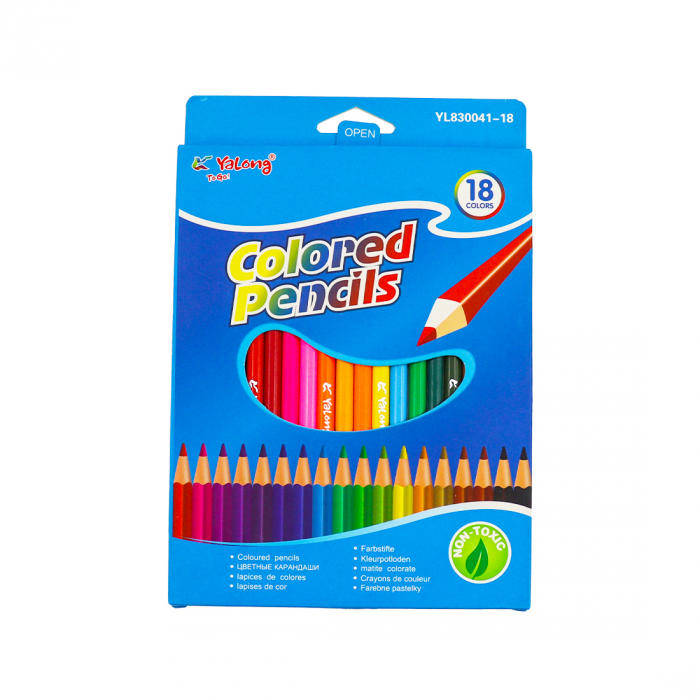 Set creioane colorate Yalong, 18 culori este perfect pentru desen si lucrari artistice. Corp triunghiular, material: lemn. Ambalat in cutie de carton cu umerase Euro.