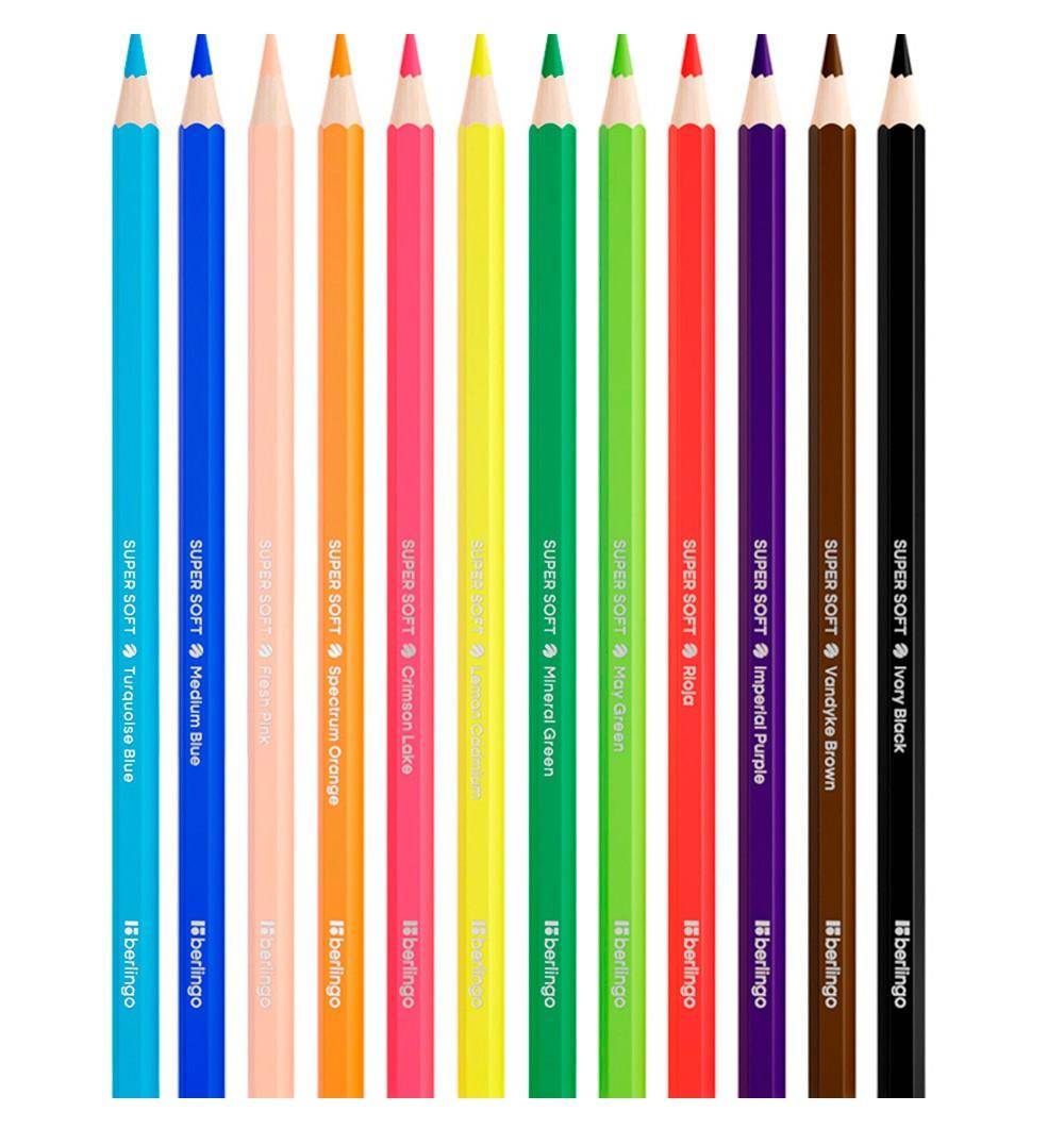 Set de creioane colorate SuperSoft din 12 culori. Forma hexagonala. Plumbul de cel mai inalt standard de calitate 8A, care este maximul pentru creioanele colorate non-art, consta din pigmenti de inalta calitate in nuante pastelate. Desenul devine confortabil si moale pe orice tip de hartie, inclusiv hartie neagr?. Grosimea plumbului este de 3,2 mm pentru o colorare impecabil de confortabila.