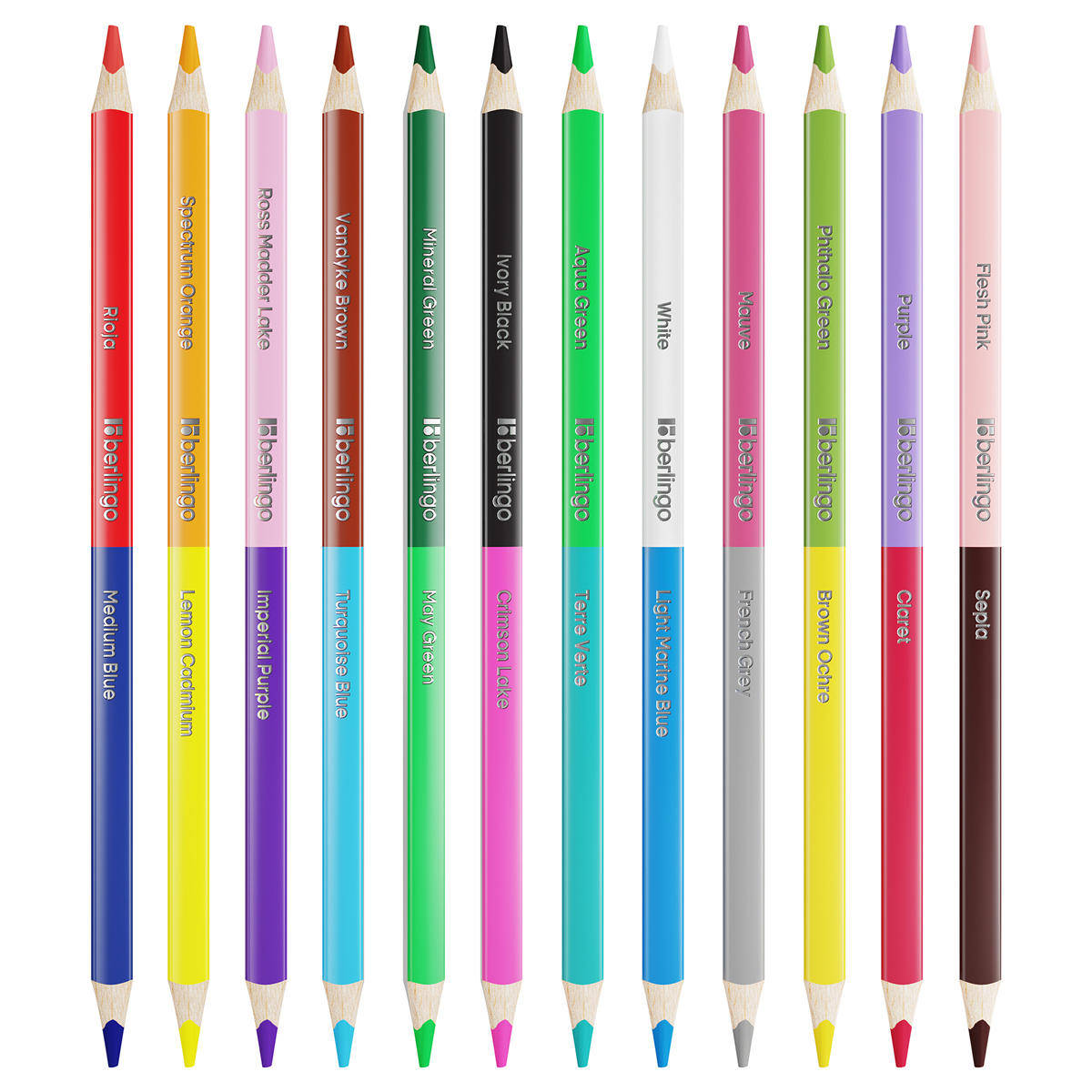 Creioane colorate Berlingo SSD0124, triunghiulare, duble, 12 bucati , 24 culori