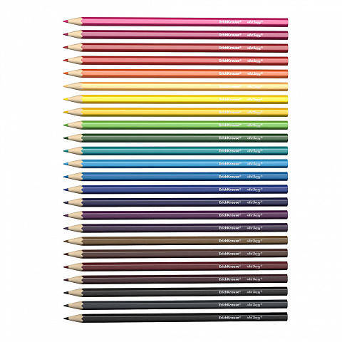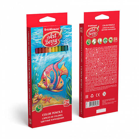 Creioane colorate din lemn ErichKrause ArtBerry, 24 culori, creioane colorate hexagonale din lemn selectat cu mine grafit. Impregnarea speciala a lemnului si dimensionarea continua a minei grafit asigura o rezistenta ridicata la impact. Lemnul moale si centrarea perfecta a minei garanteaza o ascutire usoara cu un consum economic de creion. Mina grafit cu diametrul de 3 mm nu zgarie hartia si nu se sfarama la desen. Certificatul european de calitate (CE) garanteaza absenta substantelor toxice. Lungime creion 175 mm. Ambalare: cutie de carton cu umeras Euro.