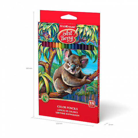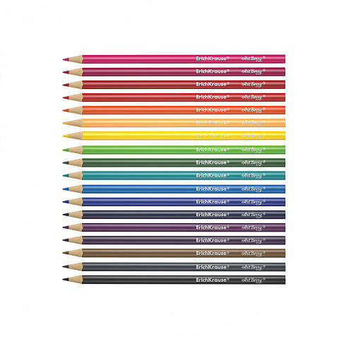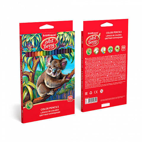 Creioane colorate din lemn ErichKrause ArtBerry, 18 culori, creioane colorate triunghiulare din lemn selectat cu mine grafit. Impregnarea speciala a lemnului si dimensionarea continua a minei grafit asigura o rezistenta ridicata la impact. Lemnul moale si centrarea perfecta a minei garanteaza o ascutire usoara cu un consum economic de creion. Mina grafit cu diametrul de 3 mm nu zgarie hartia si nu se sfarama la desen. Certificatul european de calitate (CE) garanteaza absenta substantelor toxice. Lungime creion 175 mm. Ambalare: cutie de carton cu umeras Euro.