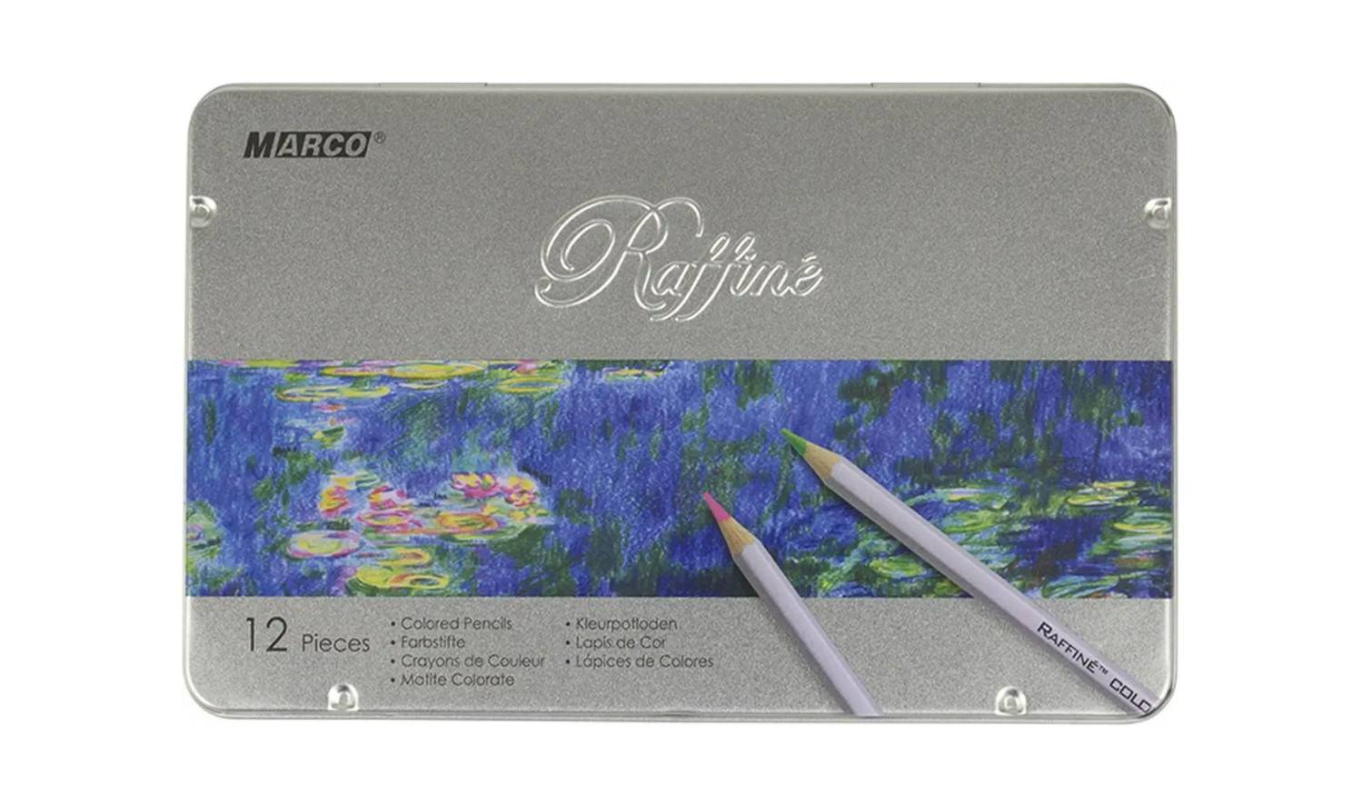 Setul de creioane colorate Raffine-Marco este fabricat din lemn de inalta calitate. Mina este rezistenta la socuri, ofera desen moale si nu necesita presiune puternica. Nu se sfarama atunci cand este ascutit, nu contine substante nocive. Creioanele colorate sunt moi si lasa o urma frumoasa si colorata pe toate tipurile de hartie. Forma corpului este hexagonala. Numar de culori: 12 bucati. Diametrul minei grif 3,2 mm. Diametrul corpului 7,2 mm. Lungimea corpului 175 mm. Ambalare: penar metalic.
