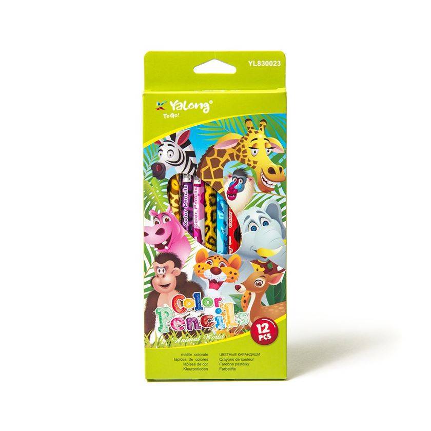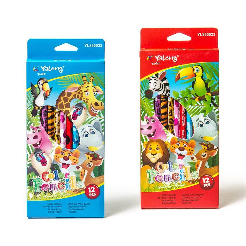 Creioanele colorate Yalong se deseneaza usor si intens, creand un spatiu enorm pentru imaginatie si creativitate. Forma corpului hexagonala. Material corp lemn. Numar de culori: 12 bucati. Culoarea corpului cu imprimeu. Diametrul minei grafit 2,8 mm. Ambalare: cutie de carton cu umeras Euro.