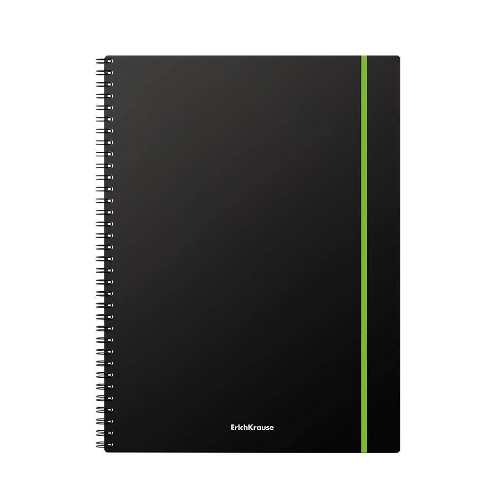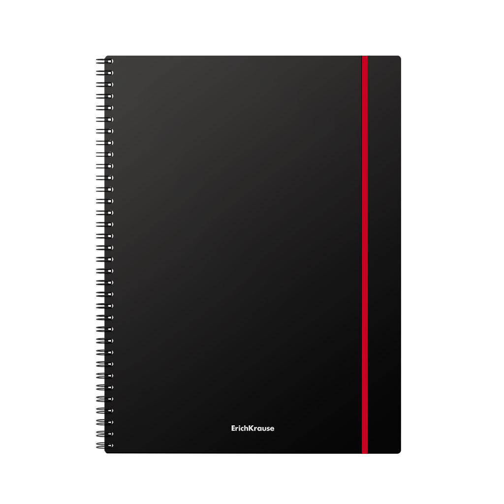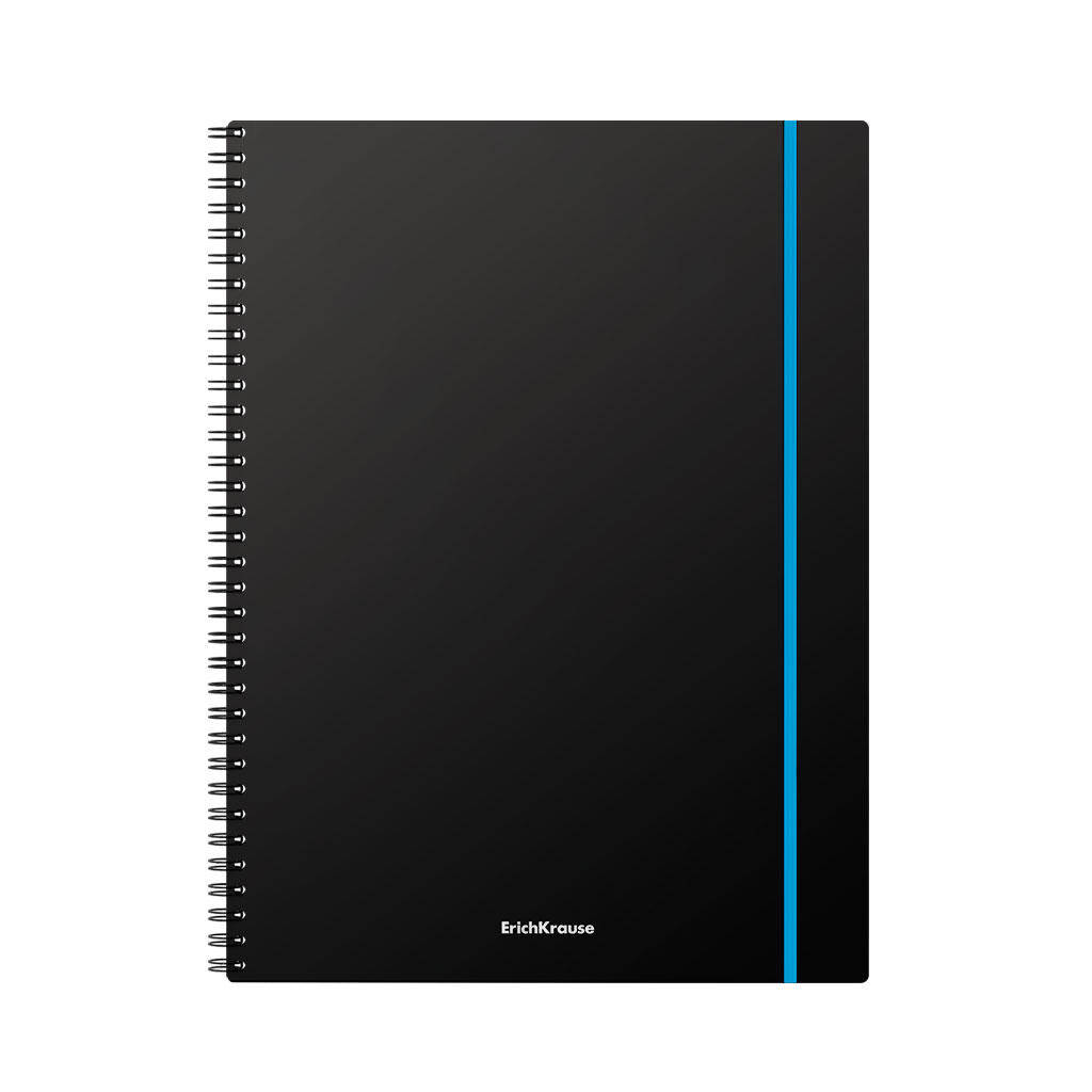 Registru ErichKrause Accent format A4 (210x297 mm). Coperta este realizata din plastic mat de calitate inalta, rezistenta la uzura, cu o textura tip nisip. Coperta este de culoare neagra. Dispune de colturi rotunjite si banda elastica rezistenta de culori asortate. Blocul contine 80 de foi in patratele. Hartie offset cu o densitate de 60 g/m2. Culoarea linierii este albastru. Tip de prindere - spirala.