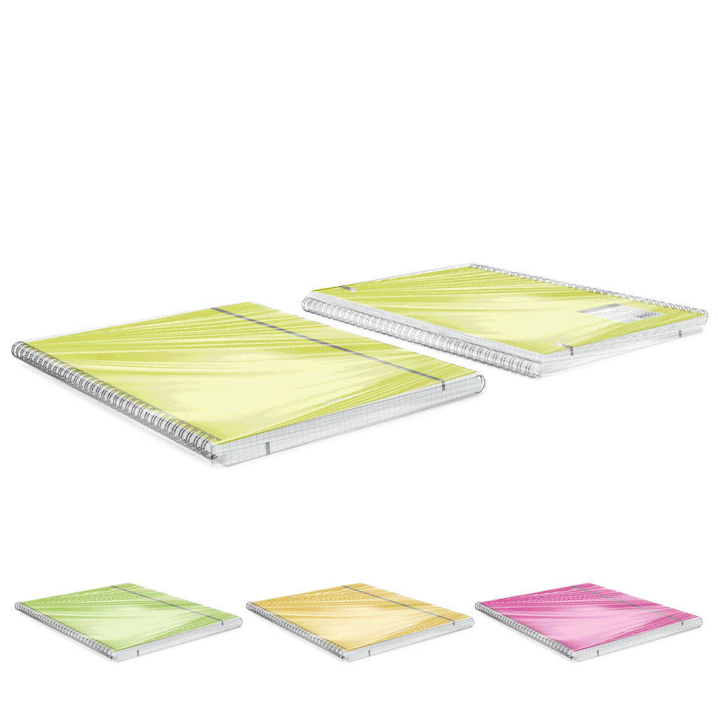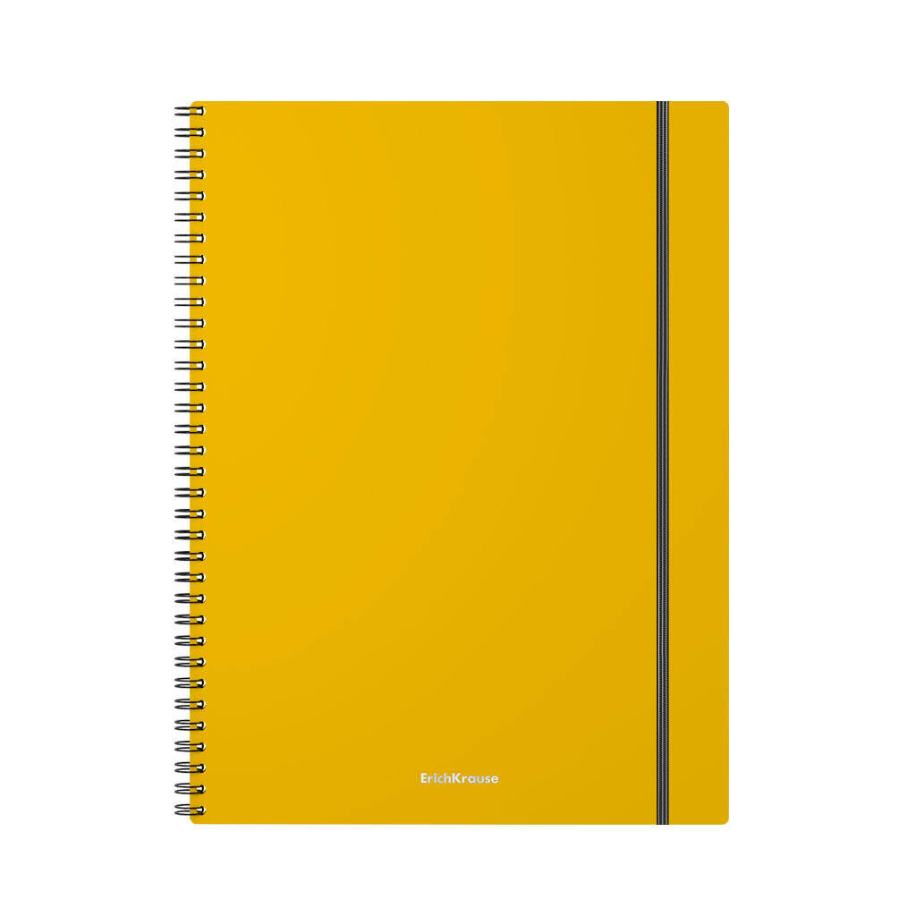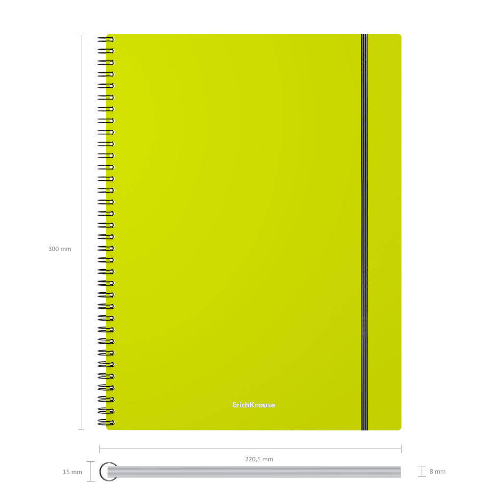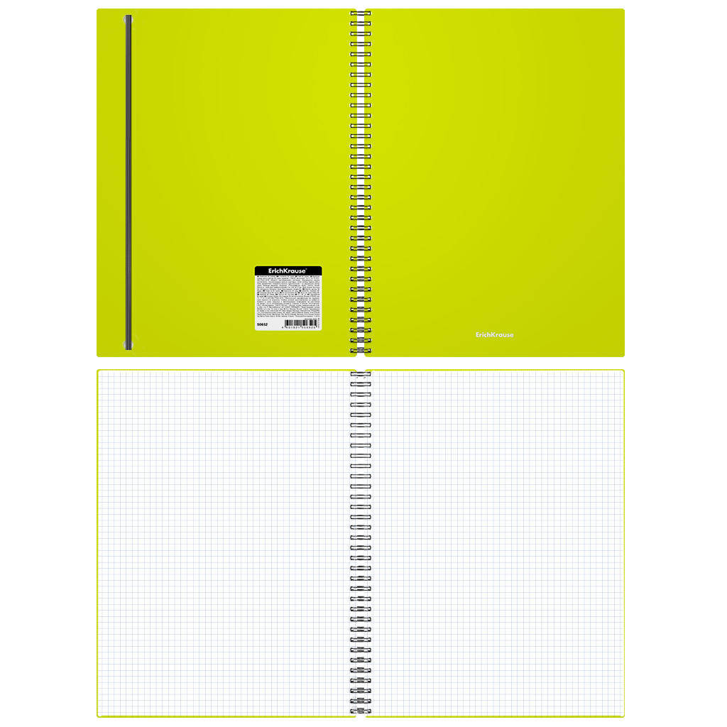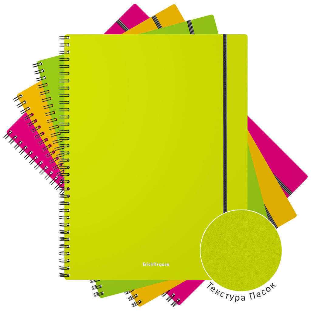 Registru ErichKrause Neon format A4 (210x297 mm). Coperta este realizata din plastic mat de calitate inalta, rezistenta la uzura, cu o textura tip nisip. Coperta dispune de culori neon, asortate si colturi rotunjite. Blocul contine 80 de foi in patratele. Hartie offset cu o densitate de 60 g/m2. Culoarea linierii este albastru. Coperta este asigurata cu o banda elastica rezistenta. Tip de prindere - spirala.