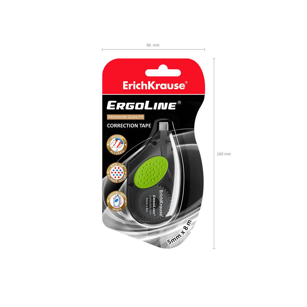 Banda de corectare ErichKrause Ergoline cu corp de culoare gri. Are o dimensiune compacta pentru depozitare usoara intr-o cutie de creion de scoala, precum si o husa care previne deteriorarea si contaminarea benzii. Ideal pentru corectarea precisa si rapida a textului. Afiseaza rezultate excelente pe toate tipurile de hartie si culori de cerneala. Pe baza de solvent. Nu necesita timp de uscare si va permite sa scrieti imediat peste corectie. Potrivit pentru utilizare cu mana stanga si dreapta. Latime 5 mm. Lungime 8 m. Dispune de blister cu euro pandativ.
