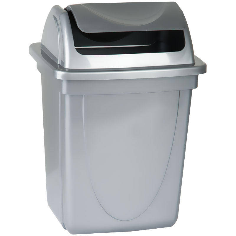 Cos de gunoi STAMM 12 litri. Este folosit pentru reciclare si depozitare temporara a deseurilor. Este echipat cu un capac rotativ. Fabricat din plastic foarte rezistent. Forma dreptunghiulara. Culoare gri. Dimensiune 275x241x395 mm