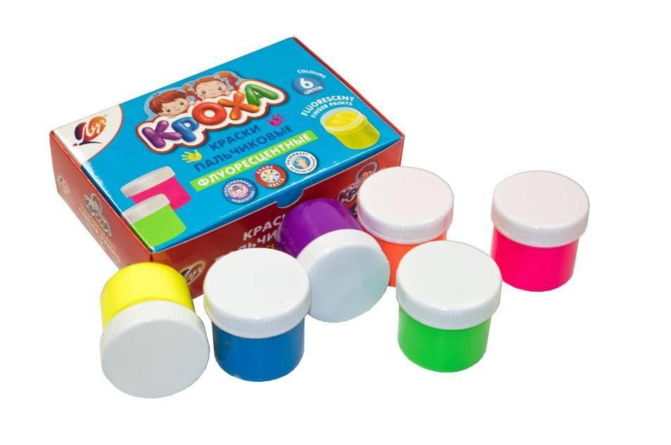 Vopselele pentru pictura cu degete LUCI Kroha au fost create cu grija pentru cei mai mici copii carora inca le este greu sa picteze cu o pensula sau cu creioane. Sunt usor de amestecat, datorita consistentei lor groase, nu stropesc sau picura atunci cand sunt folosite. Puteti desena cu vopsele pe hartie sau carton, cu degetele sau cu un burete. Setul contine 6 culori fluorescente care stralucesc puternic in lumina de neon. Setul contine 6 culori: violet, albastru, portocaliu, roz, verde deschis si galben.