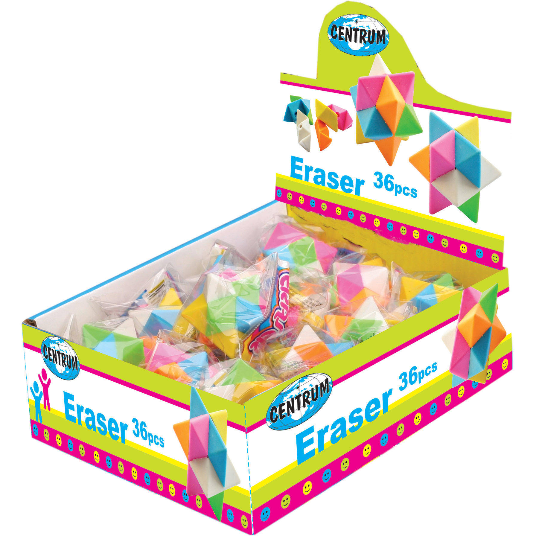 Radiera Centrum PUZZLE este fabricata din cauciuc sintetic. Ideal pentru stergerea liniilor lasate de creioane. Are o forma neregulata. Culori asortate. Fiecare radiera este impachetata intr-un ambalaj individual. Ambalare: cutie de carton a cate 24 bucati.