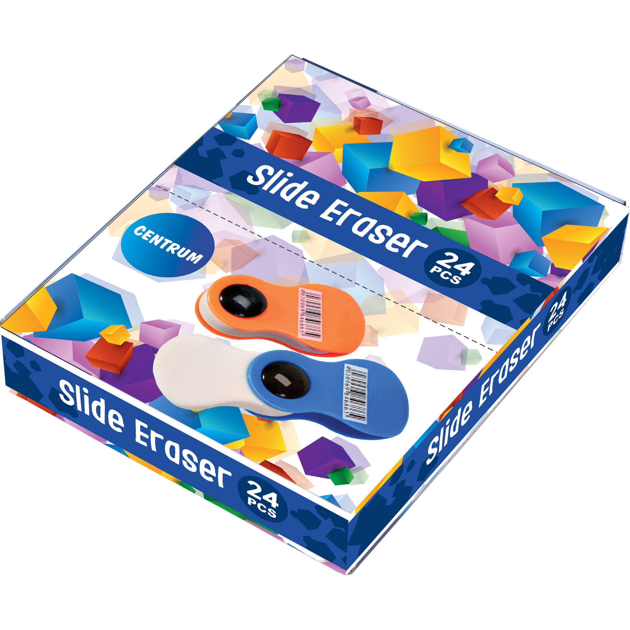 Radiera Centrum Slide este fabricata din cauciuc sintetic. Ideal pentru stergerea liniilor lasate de creioane. Dispune de un maner de plastic pe corp. Culoare portocaliu/albastru.