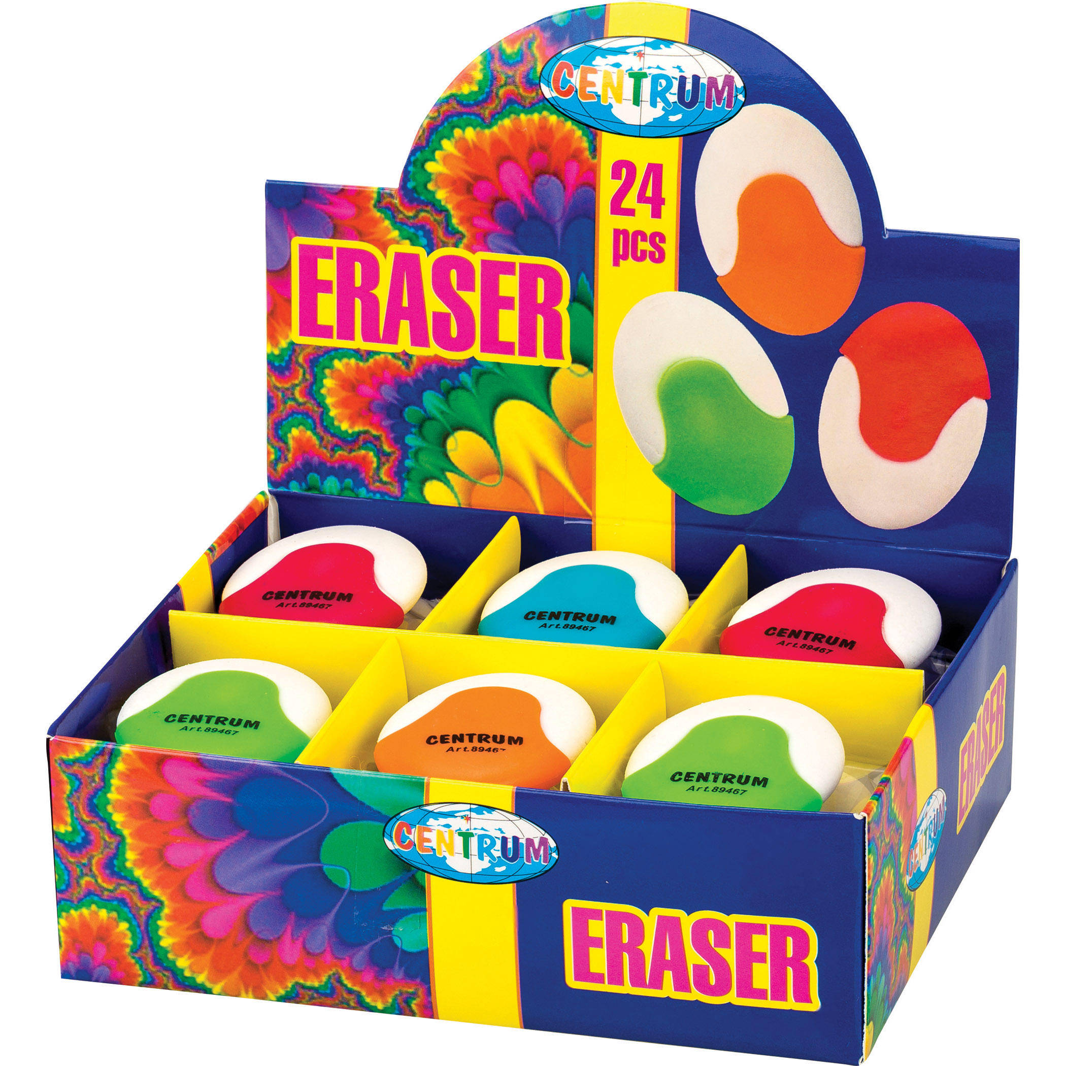 Radiera Centrum este fabricata din cauciuc sintetic. Ideal pentru stergerea liniilor lasate de creioane. Are o forma ovala ergonomica. Patru culori asortate. Fiecare radiera este impachetata intr-un ambalaj individual. Dimensiune 50x35x15 mm. Ambalare: cutie de carton a cate 24 bucati.
