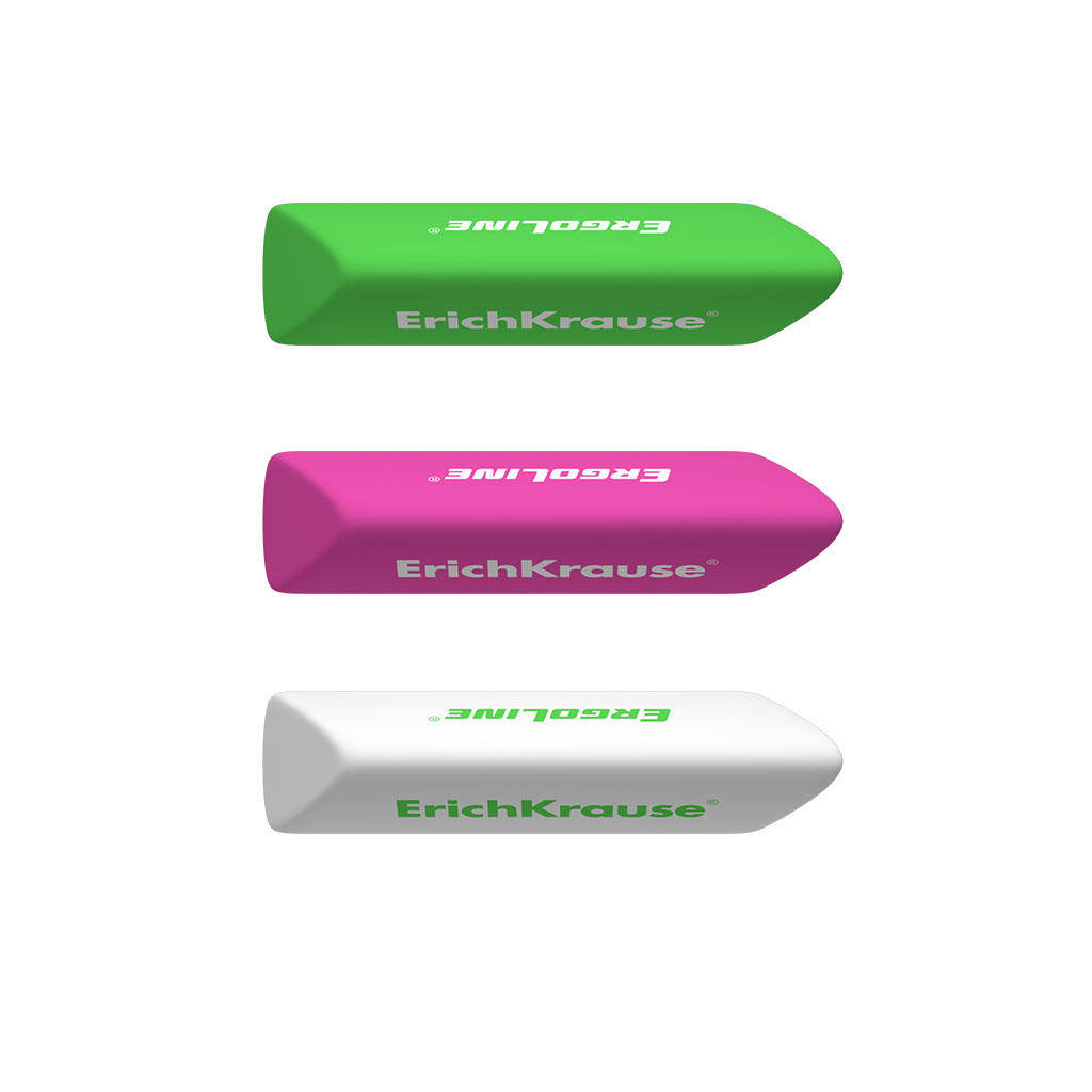 Radiera moale ErichKrause ErgoLine Prism este realizata din cauciuc termoplastic (TPR) ecologic si hipoalergenic, cu formare redusa de firimituri (Dust free) si este realizata in culori alb si neon. Nu contine PVC. Forma corp dreptunghiulara. Dimensiune 60 x 14 x 14 mm. Ambalare: cutie de carton a cate 36 bucati.