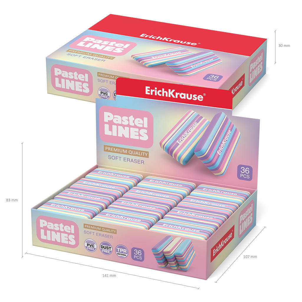 Radiera moale, cu o forma clasica, realizata din cauciuc termoplastic (TPR) modern, ecologic si hipoalergenic, cu formare redusa de firimituri (Dust Free). Forma originala a radierei va permite sa stergeti cele mai fine linii. Nu contine PVC. Dimensiune 44,3 x 25 x 10 mm. Culoare asortat. Cantitate in ambalaja 36 bucati.