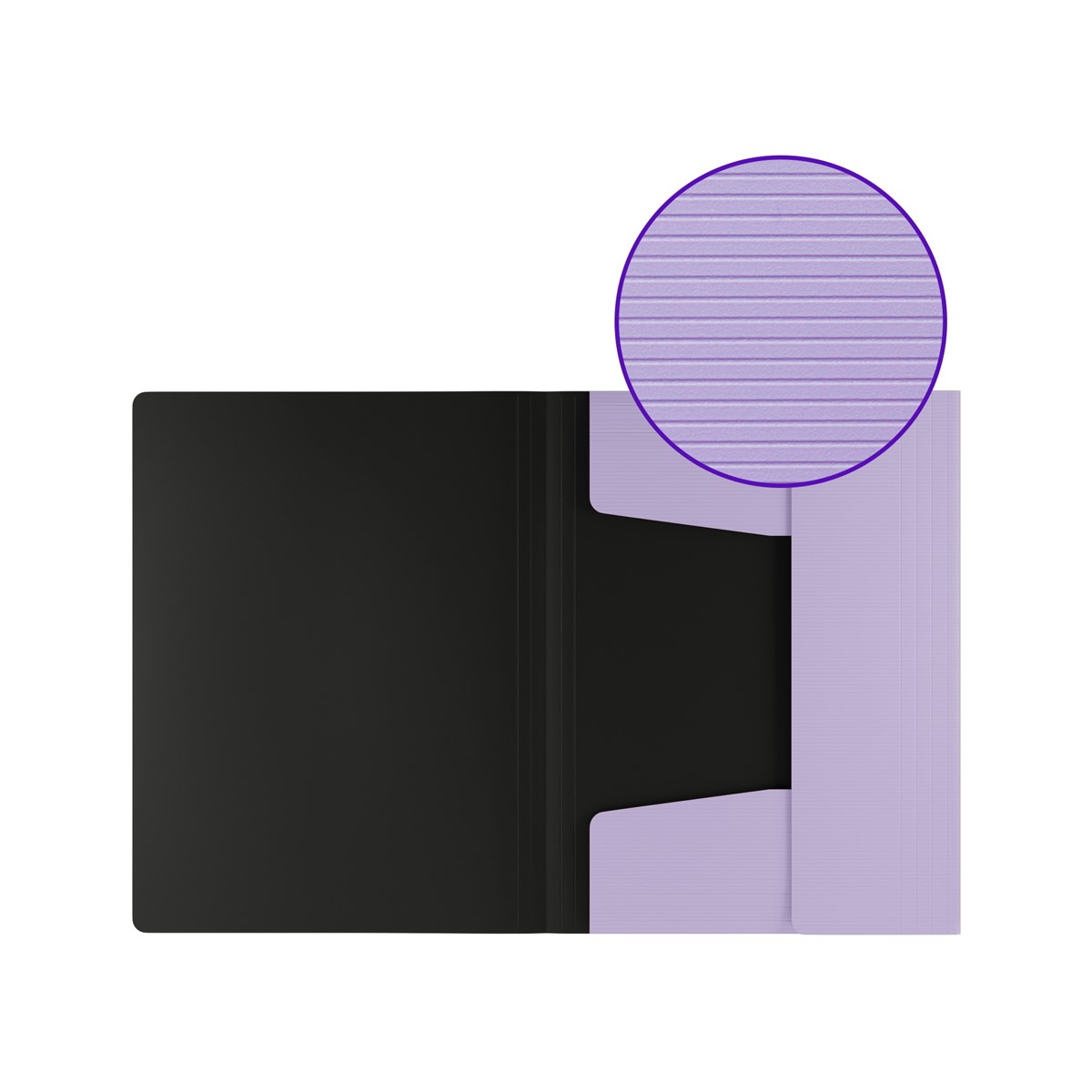 Mapa din plastic A4 Berlingo Haze cu benzi elastice (320 x 240 mm) este un instrument excelent si elegant pentru depozitarea documentelor. Coperta sa groasa are o textura placuta la atingere, moale. Poate contine pana la 300 de coli. Grosimea copertei este de 600 microni, iar latimea cotorului este de 5-32 mm. Coperta violet pastel si interiorul contrastant in negru creeaza un design elegant. Dosarul este fabricat din polipropilena de inalta calitate. Benzile elastice contrastante ajuta la pastrarea documentelor in siguranta. Dosarul este ambalat individual intr-o punga transparenta, personalizata.