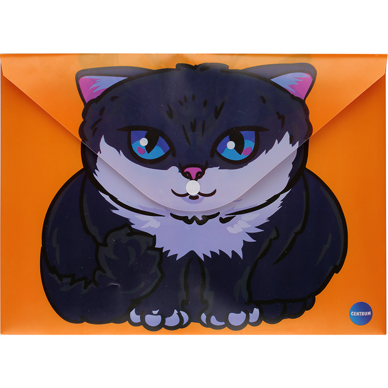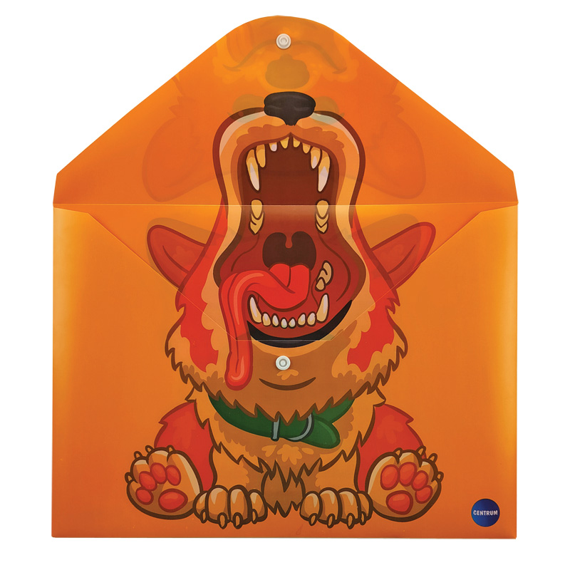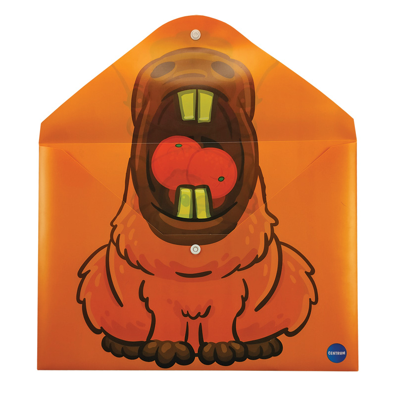 Mapa plic cu buton A4 Centrum, se inchide ermetic cu un buton, care este conceput pentru utilizare zilnica. Mapa-plic are o grosime de 180 microni si este fabricata din plastic cu o textura lucioasa, care protejeaza documentele de sifonare si alte deteriorari. Produsul are o orientare orizontala. Ambalare individuala in punga. Culoare portocaliu, cu desen.