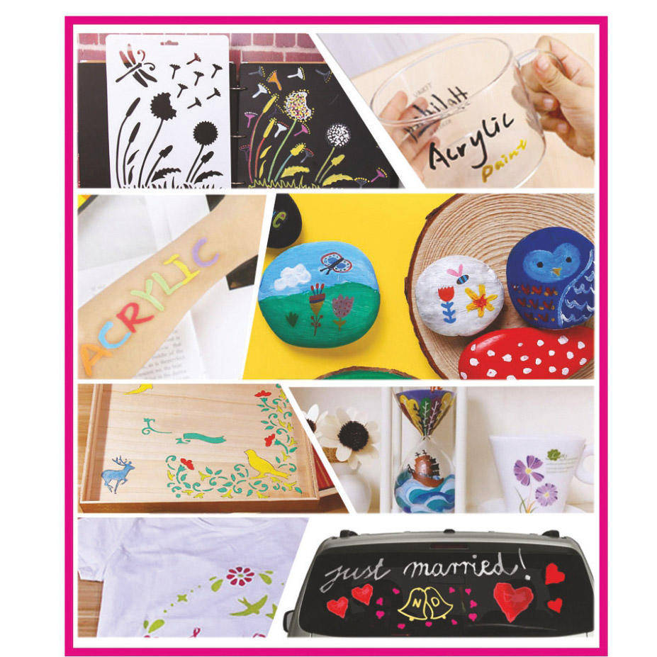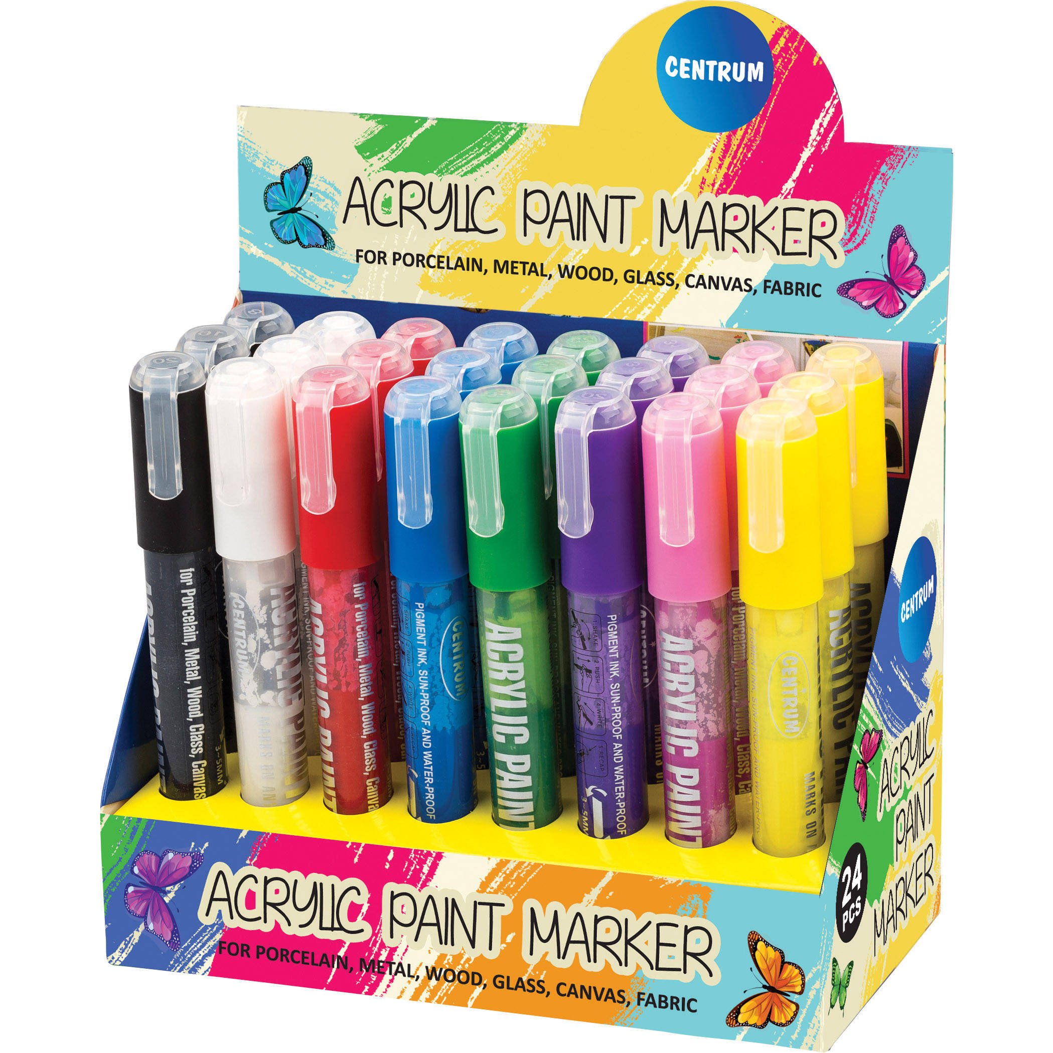 Marker dublu acrilic. Cu varf rotund si tesit. Grosimea liniei 3 mm sau 1-5 mm. Potrivit pentru diferite suprafete.