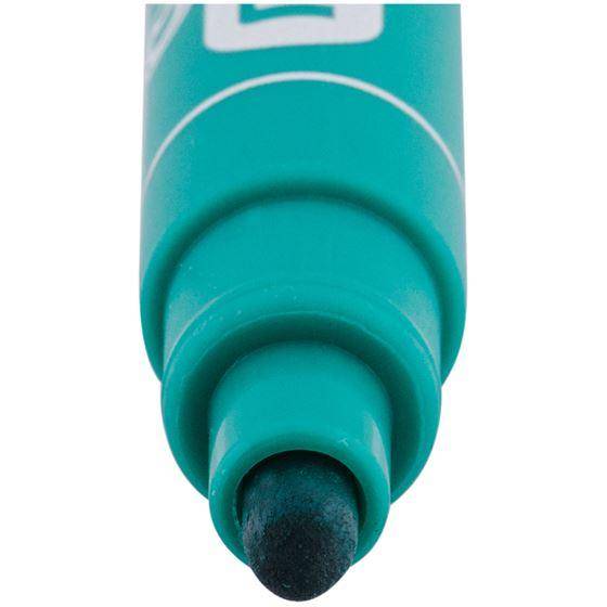 Marker pentru hartie flipchart, verde. Cand scrieti pe un flipchart, cerneala nu trece si nu pateaza urmatoarea foaie de flipchart. Markerul poate fi lasat cu capacul deschis pana la 7 zile. Varful gros, Diametrul liniei de scris 2,5 mm. Diametrul corpului 15 mm. Cantitate in cutie: 10 bucati.
