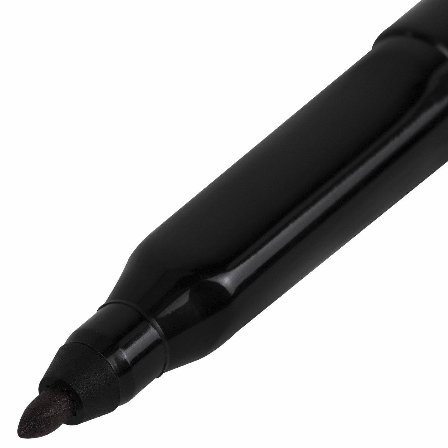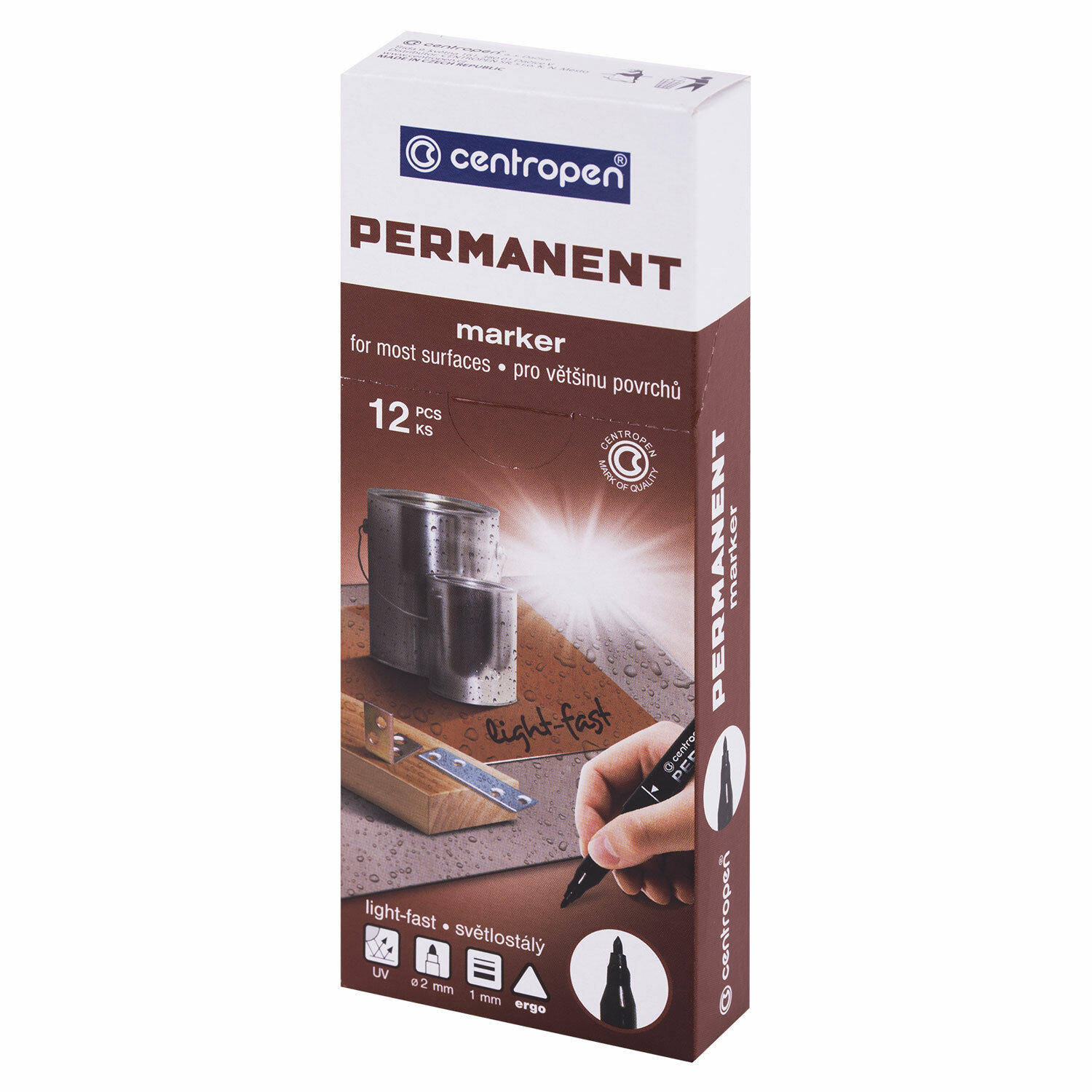 Marker permanent, negru. Zona de prindere ergonomica. Proiectat pentru scris pe majoritatea suprafetelor. Cerneala permanenta pe baza de alcool are rezistenta crescuta la lumina. Rezistent la apa, abraziune si intemperii. Varf rotund, grosime linie 1 mm. Forma corpului este rotunda/triunghiulara. Diametru corp 9 mm. Cantitate in cutie: 12 bucati.