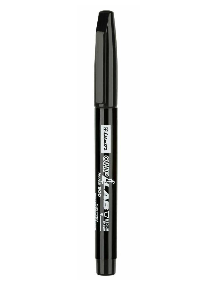 Marker permanent, negru. Varf acrilic dur. Cerneala inchisa, saturata pe baza de alcool. Nu contine xilen sau toluen. Ideal pentru marcarea de zi cu zi. Varf rotund, grosimea liniei 1 mm. Forma corpului este rotunda.