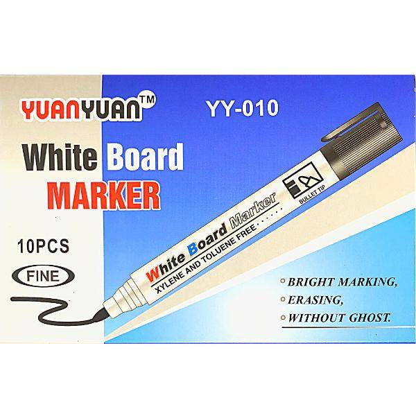 Marker Whiteboard YY-010 este conceput pentru tabla Whiteboard magnetice si alte suprafete neporoase: sticla, portelan, folie. Cerneala pe baza de alcool se livreaza in doze, nu formeaza pete si se usuca pe suprafata placii in 1-2 secunde. Varful din fibra durabila nu se scufunda in corp si isi pastreaza forma pe toata durata de viata a markerului. Diametrul liniei de scris - 2,5 mm. Culoarea cernelii este albastra. Cantitate in amabalaj 10 bucati.