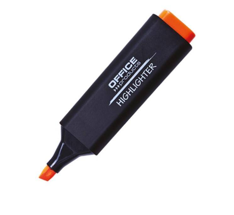 Marker OFFICE PRODUCTS pentru evidentierea textului pe hartie, in carte, pe fotocopii si printuri cu jet de cerneala si laser. Varf tesit, dispune de o clema. Non-toxic. Grosimea liniei de scriere 1-5 mm. Lungimea liniei de scris 250 m. Culoare portocaliu. Cantitate in ambalaj 10 bucati.