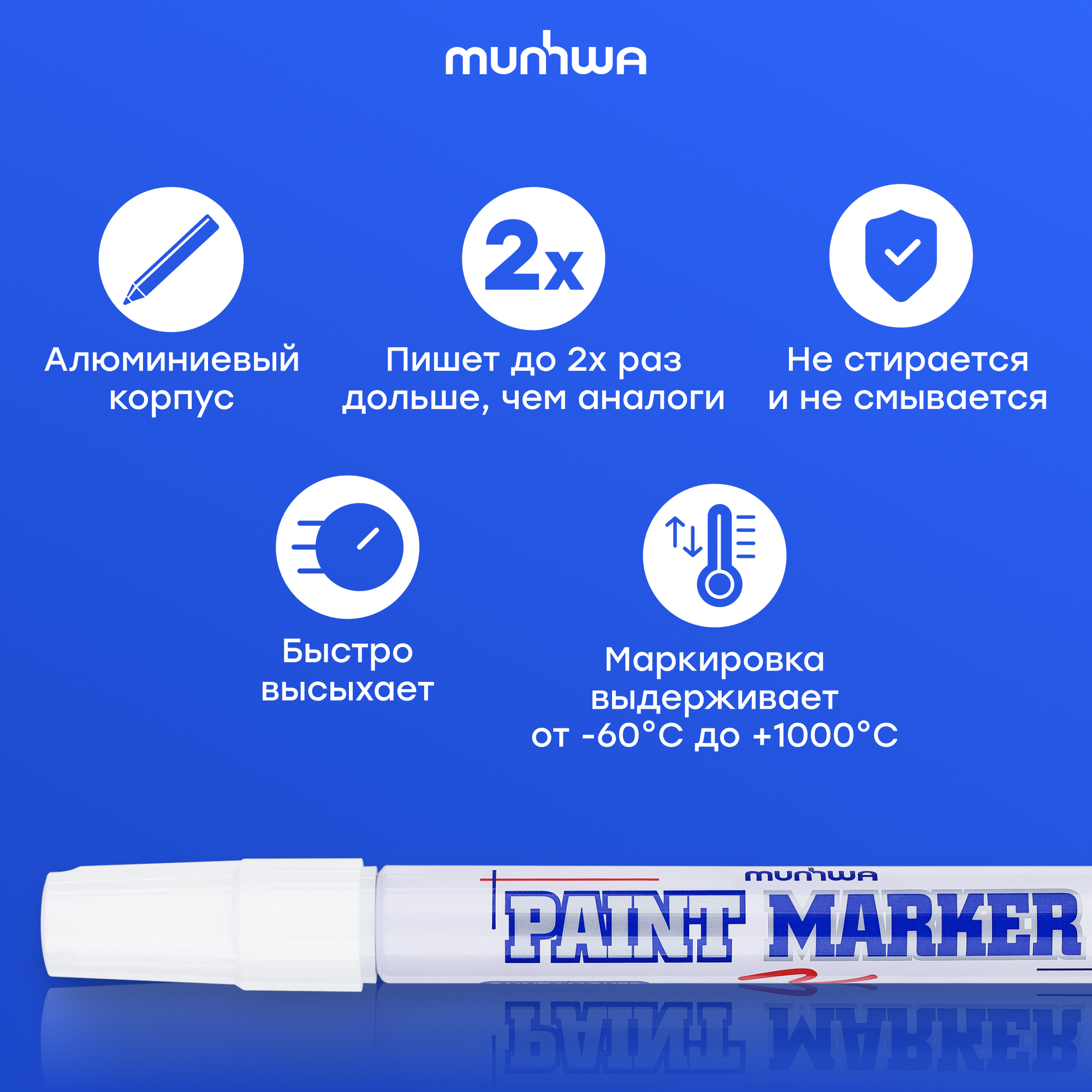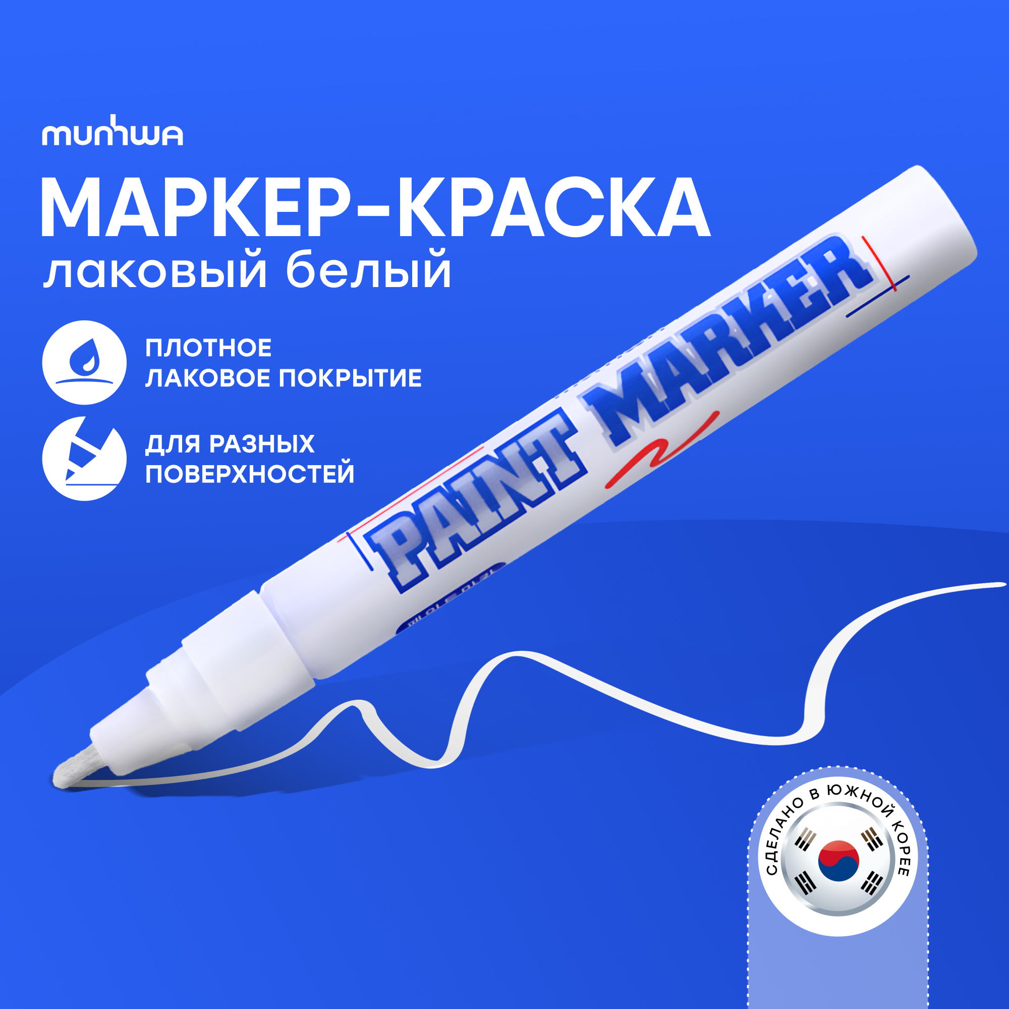 Marker-vopsea MunHwa (marker de lac) este un marker profesional pe baza de nitro. Markerul de vopsea MunHwa scrie pe toate tipurile de suprafete: metal, lemn, cauciuc, beton, sticla si piele. Cerneala este alba, iar diametrul este de 2 mm. Markerul-vopsea este potrivit pentru restaurarea defectelor de pe electrocasnice, incaltaminte, caroserii auto, dar si pentru scrisul pe placi de piatra. Markerul de vopsea MunHwa are o gama larga de aplicatii in design si decor. Corpul markerului este fabricat din aluminiu durabil.