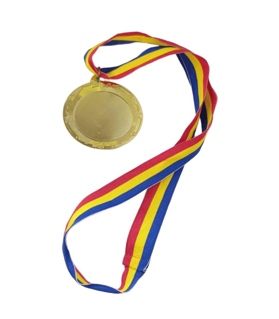Medalie eleganta din metal cu diametrul de 7 cm. Medalia dispune de banda tricolor.