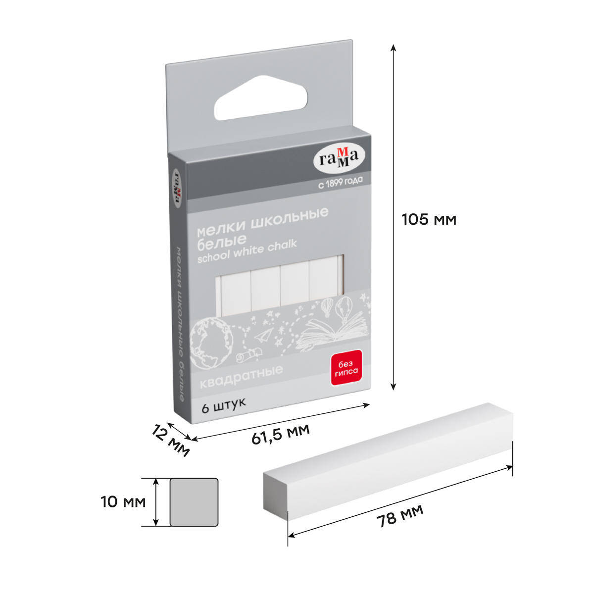 Creta pentru tabla Gamma, alba, patrata, 6 bucati