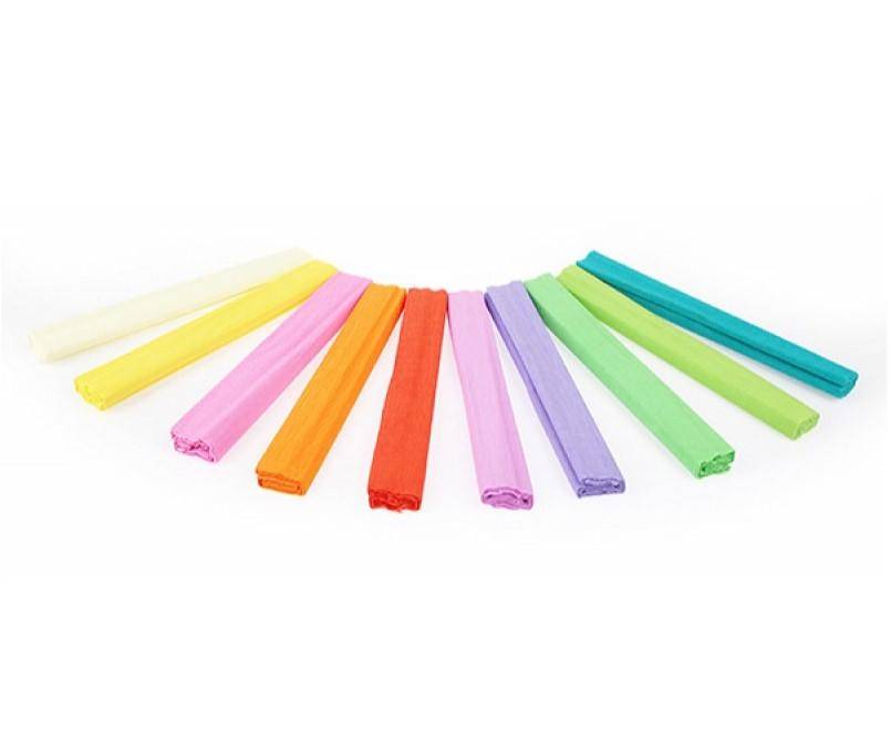 Set de role de hartie creponata cu dimensiunea de 50x200 cm, ambalate separat in folie. Culoare culori pastel asortate. 10 bucati in set.