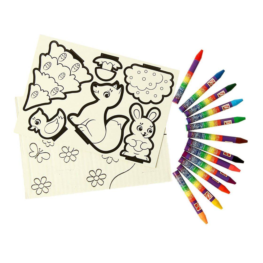 Set de creatie Teatru de masa. In padure este un joc educational de colorat cu elemente teatrale. In procesul de creare, copilul foloseste urmatoarele sarcini de dezvoltare: - formarea reprezentarilor spatiale: departe, aproape, sus si jos, dreapta, stanga, in fata, in spate, la mijloc; - dezvoltarea perceptiei vizuale: recunoasterea imaginilor de contur ale obiectelor, animalelor; capacitatea de a selecta culoarea potrivita atunci cand le pictezi; - dezvoltarea abilitatilor motorii fine, precizia miscarilor degetelor. Setul contine: - creioane cu ceara pe baza de ulei 12 culori - figurine din carton - cutie de carton