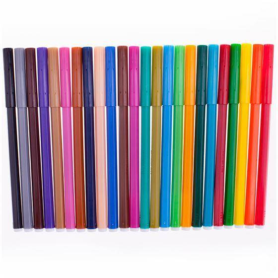 Culoare aprinsa. Sigure pentru copii. Nu contin substante nocive . Nu se usuca. Capac ventilat. Penita cilindrica rezistenta la identare. Cantitate culori: 24. Forma corpului: hexagonal. Grosimea liniei de scriere 1 mm.