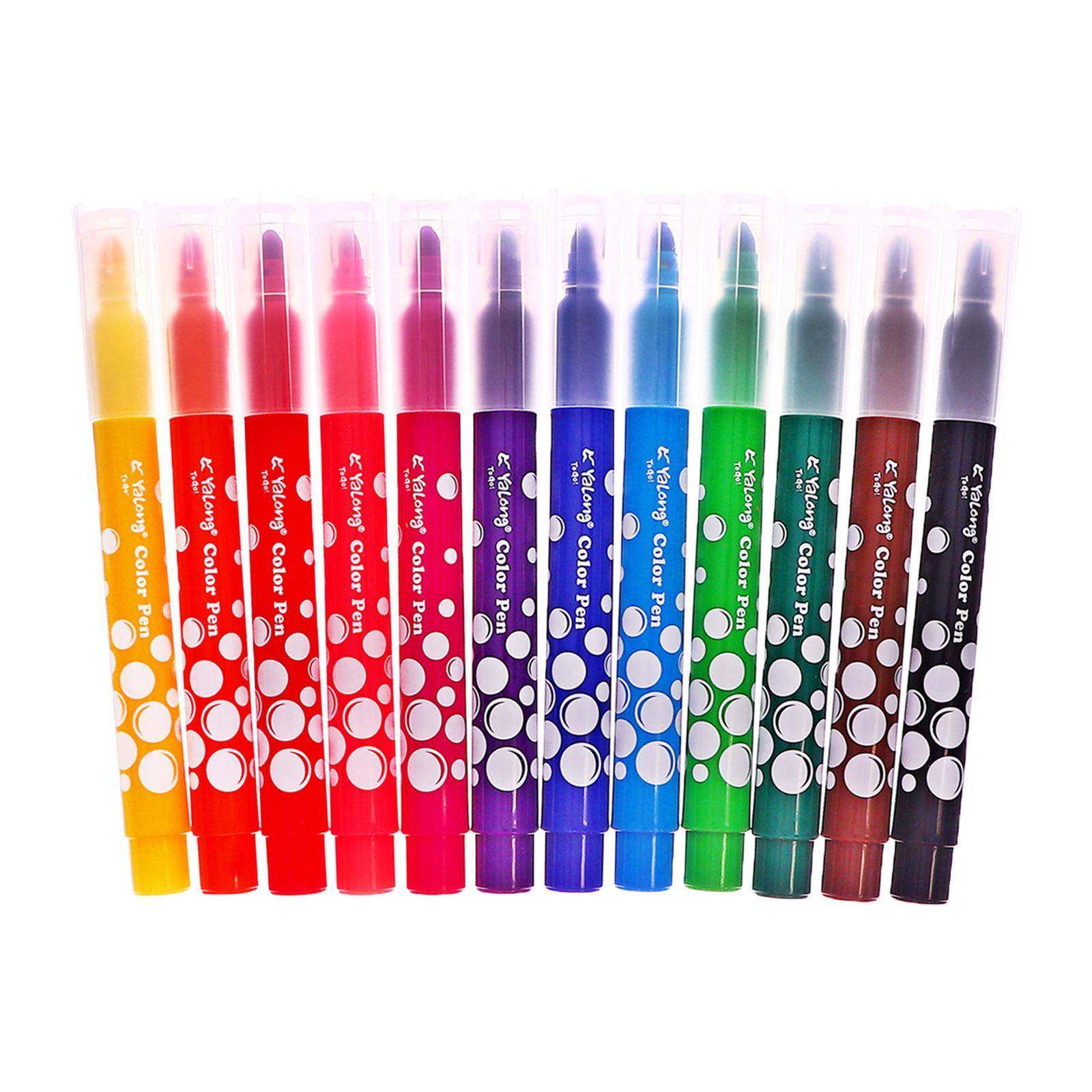 Set carioci la 12 culori. Unitate de scris: pensula. Cerneala lavabila. Corp rotund, ingrosat, capac ventilat, ambalaj carton, pandantiv Euro.