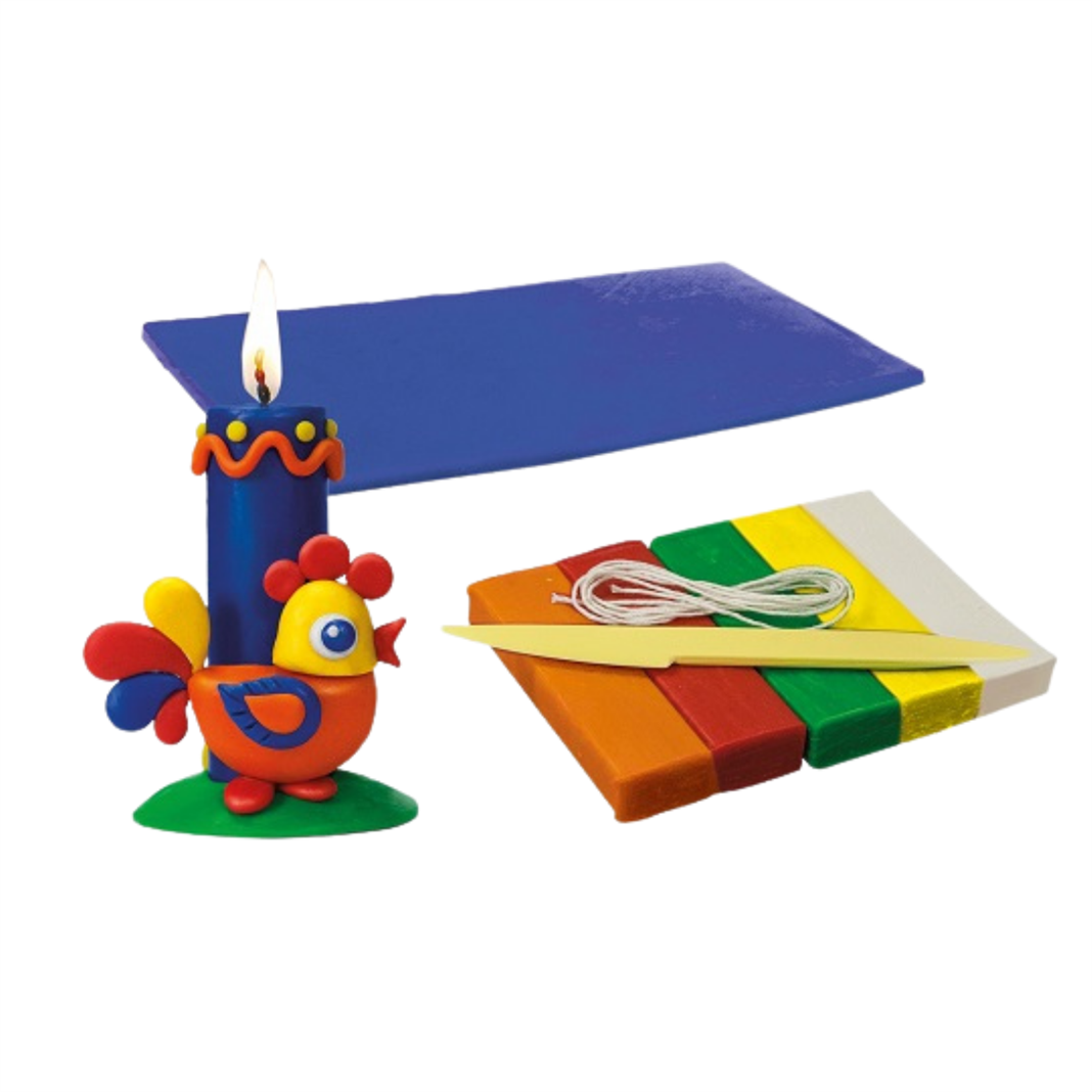Un set uimitor de crearea a luminarii, Cocosul si gainusa este format din foi de ceara multicolore, un fitil si un cutit din plastic. Pentru a incepe lucrul, trebuie sa deschideti cutia. Initial trebuie sa desenati conturul lumanarii folosind cutitul din plastic. In interiorul foii de ceara trebuie sa plasati fitilul care va rula pe toata lungimea lumanarii. Apoi, cand conturul este complet gata, puteti incepe sa sculptati. Lumanarea finita va fi un decor excelent in camera copilului.