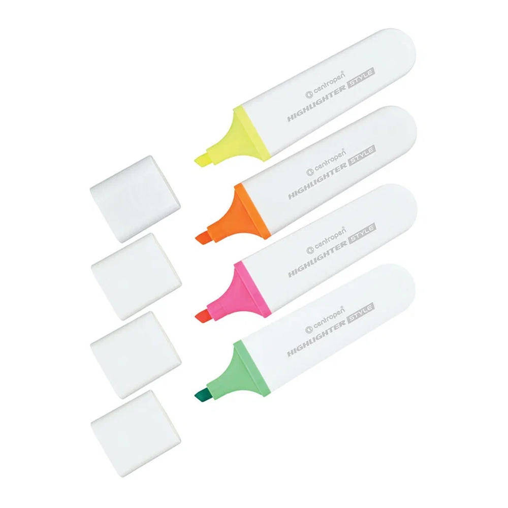 Set markere text Style cu un corp alb si cerneala asortata in 4 culori, este potrivit pentru evidentierea si sublinierea textului pe orice tip de hartie. Virf tesit, latime de linie 1-4,6 mm. Culori cerneala: violet, roz, albastru, verde.