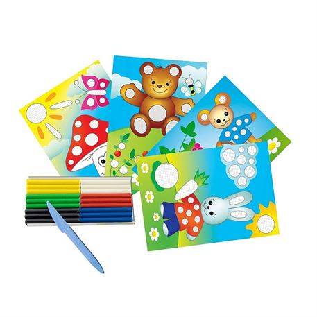 Setul Mozaic din plastilina este prezentat intr-o cutie cadou in seria de produse Kroha. Setul include: plastilina 6 culori, desene colorate - 4 bucati si un cutit din plastic - 1 bucata. Plastilina moale din set va permite sa dezvoltati rapid tehnici de lucru cu plastilina si anume motricitatea fina. Subiectele desenelor sunt pe intelesul copiilor si corespund nivelului de dezvoltare a perceptiei vizuale si ideilor despre lumea inconjuratoare