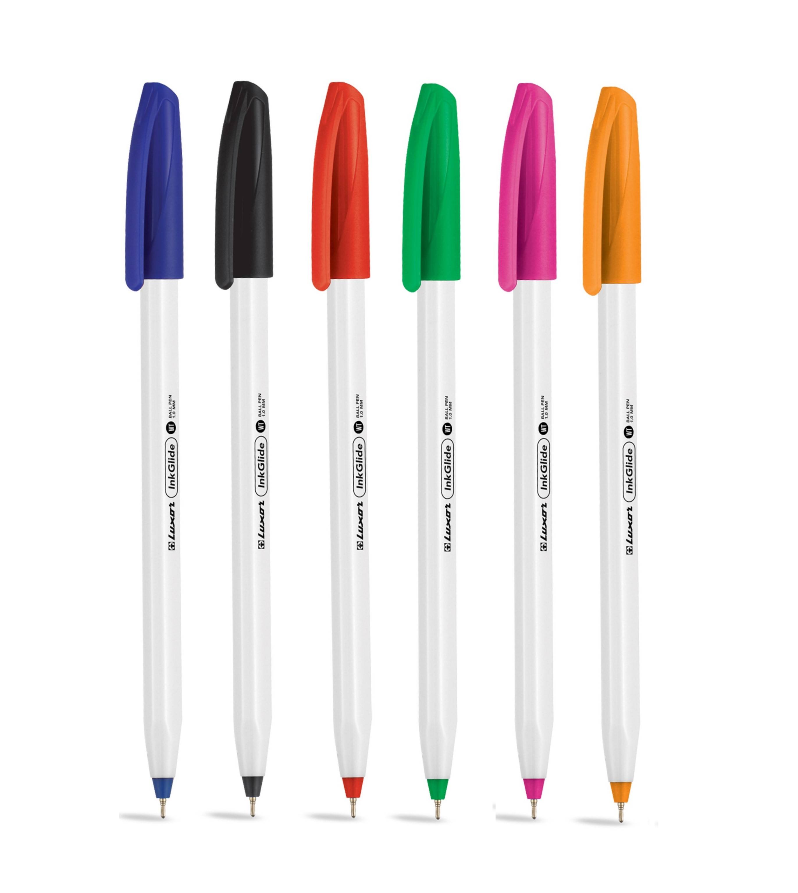 Set de pixuri cu bila colorate. Cantitate pixuri in set: 6 bucati. Corpul pixului este fabricat din plastic alb. Diametrul liniei de scris: 1,0 mm. Cerneala este de o viscozitate foarte scazuta care asigura o scriere rapida si precisa. Culorile pixurilor este: 6 culori asortate: negru, albastru, rosu, verde, portocaliu, roz.