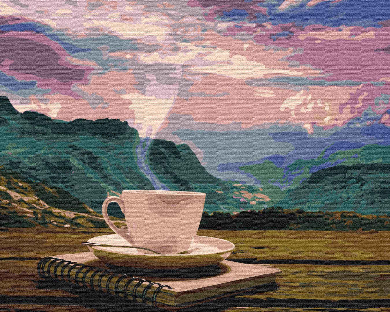 Pictura pe numere 40x50cm Brushme Dimineata cu vedere la munti. Nu trebuie sa fii un maestru al picturii pentru a crea o capodopera uimitoare! Nu exista limite - alegeti doar un desen pe care il puteti picta, transformandu-l intr-o pictura uimitoare pe panza de inalta calitate. Acest set include tot ce aveti nevoie pentru a crea un tablou!