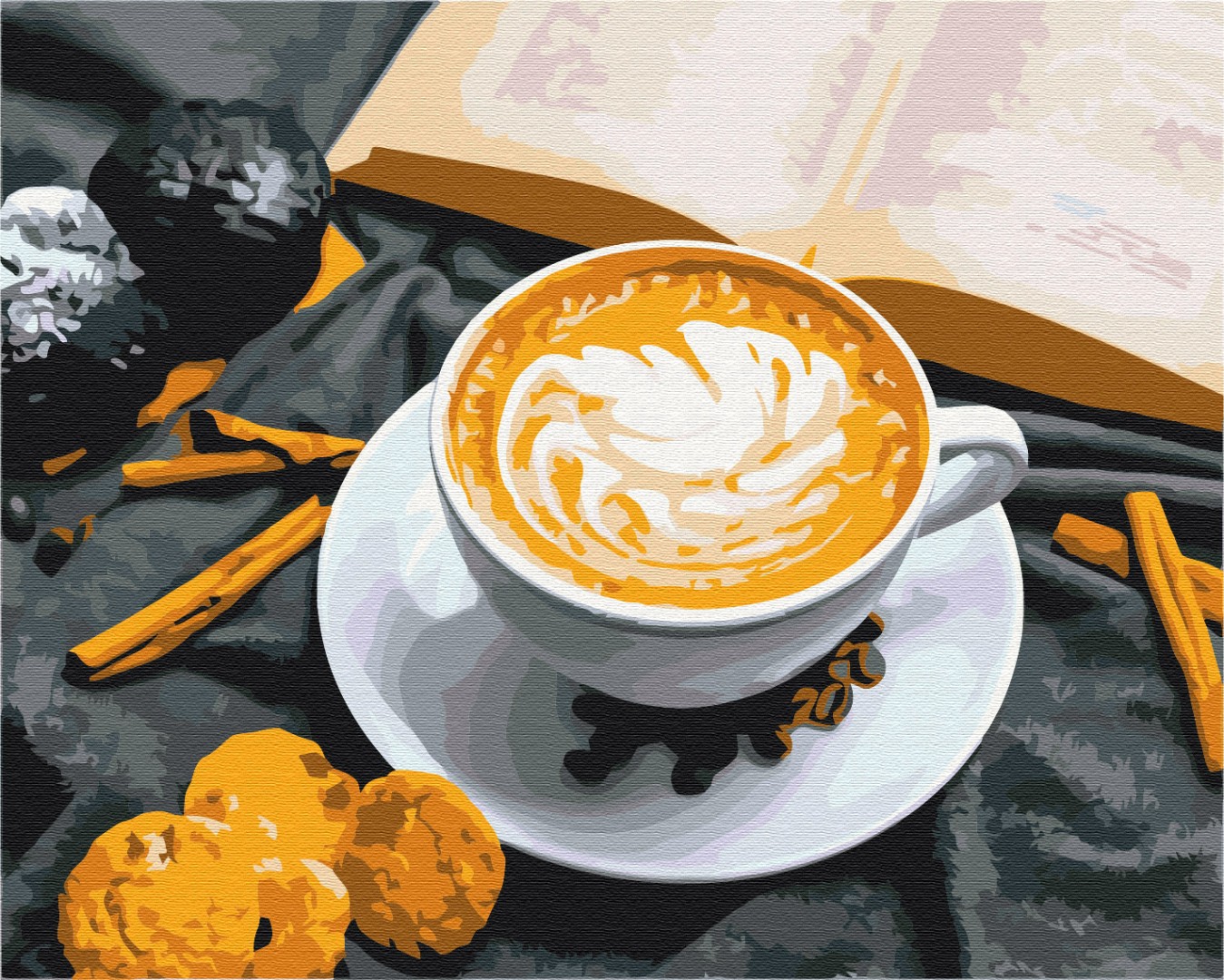 Pictura pe numere 40x50cm Brushme Cafea cu aroma de scortisoara. Nu trebuie sa fii un maestru al picturii pentru a crea o capodopera uimitoare! Nu exista limite - alegeti doar un desen pe care il puteti picta, transformandu-l intr-o pictura uimitoare pe panza de inalta calitate. Acest set include tot ce aveti nevoie pentru a crea un tablou!