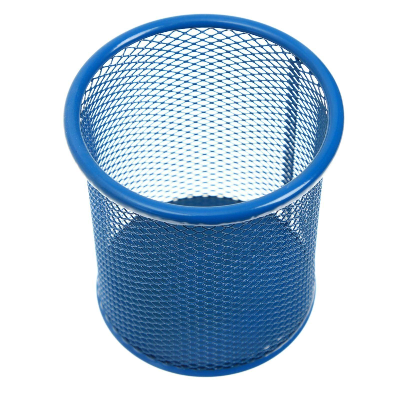 Suportul pentru rechizite este folosit pentru a depozita creioane, pixuri, markere si alte ustensile de scris. Fabricat din plasa metalica albastra usoara. Un suport ergonomic in forma rotunda va arata elegant pe masa de lucru, mai ales daca este completat cu alte elemente ale colectiei metalice - suport de hartie, unitati de depozitare verticale. Dimensiunea: 95 x 85 mm. Se livreaza fara umplutura. Nu se roteste.