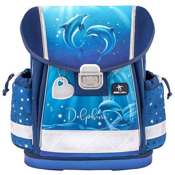Ghiozdan Belmil Classy 403-13 Delfinins anatomica 844226 - Cantareste doar 880-950g si este realizat din materiale de calitate, durabile si rezistente la apa. -Dispune de compartimente de depozitare impartite pentru a ajuta copiii sa organizeze mai usor lucrurile pentru scoala. - Cartile si caietele de toate formatele se potrivesc perfect in ghiozdan - Puteti purta o sticla de apa in buzunarele laterale. (pana la 0,7 l) - Intarit pe toate laturile si mai ales in partea de jos, ceea ce ii confera stabilitate si durabilitate. - Partea inferioara are functii suplimentare: fundul in sine este foarte stabil, astfel incat ghiozdanul nu se rastoarna si ramane curat. - Spatele ergonomic al ghiozdanului asigura un efort minim pe spate. - Bretelele sunt foarte confortabile si adaptabile copiilor, astfel incat confortul zilnic este garantat. - Cu geanta Belmil, siguranta este garantata chiar si pe intuneric: elemente fluorescente amplasate in locuri atent selectate, durabile si usor de folosit, incuietoarea metalica reflectorizanta asigura siguranta si vizibilitatea pe intuneric. - Varsta recomandata: 6-8 ani - Dimensiuni: 36 x 32 x 19 cm - Material: poliester impermeabil - Capacitate: 19 l - Accesorii: pandantiv Belmil si breloc fluorescent
